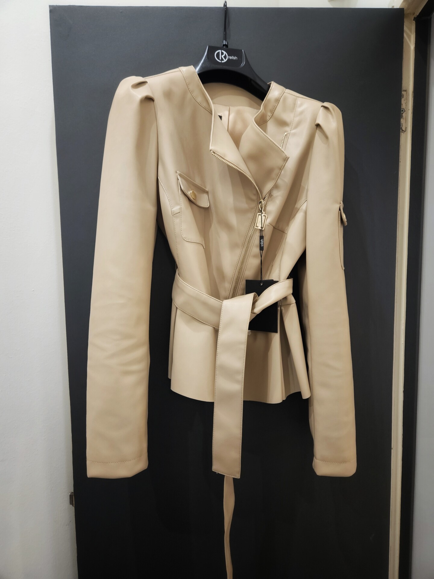 Il giubbino Corrat è un capo audace e sofisticato, perfetto per chi cerca uno stile contemporaneo con un tocco di originalità. Con maniche lunghe a sbuffo, dona volume e movimento al look, mentre la zip trasversale e le tasche davanti e sulla manica aggiungono dettagli di tendenza. La cintura in vita consente di personalizzare la vestibilità, esaltando la silhouette. Realizzato in ecopelle, questo giubbino è ideale per un look urbano e moderno, che unisce comfort e stile.