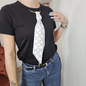 T-Shirt Andre maniche lunghe con cravatta logo, un capo moderno e sofisticato che aggiunge carattere all’outfit. La cravatta logo conferisce personalità e un dettaglio fashion unico, mentre la linea semplice valorizza la silhouette con charme contemporaneo. Ideale per look day-to-night.