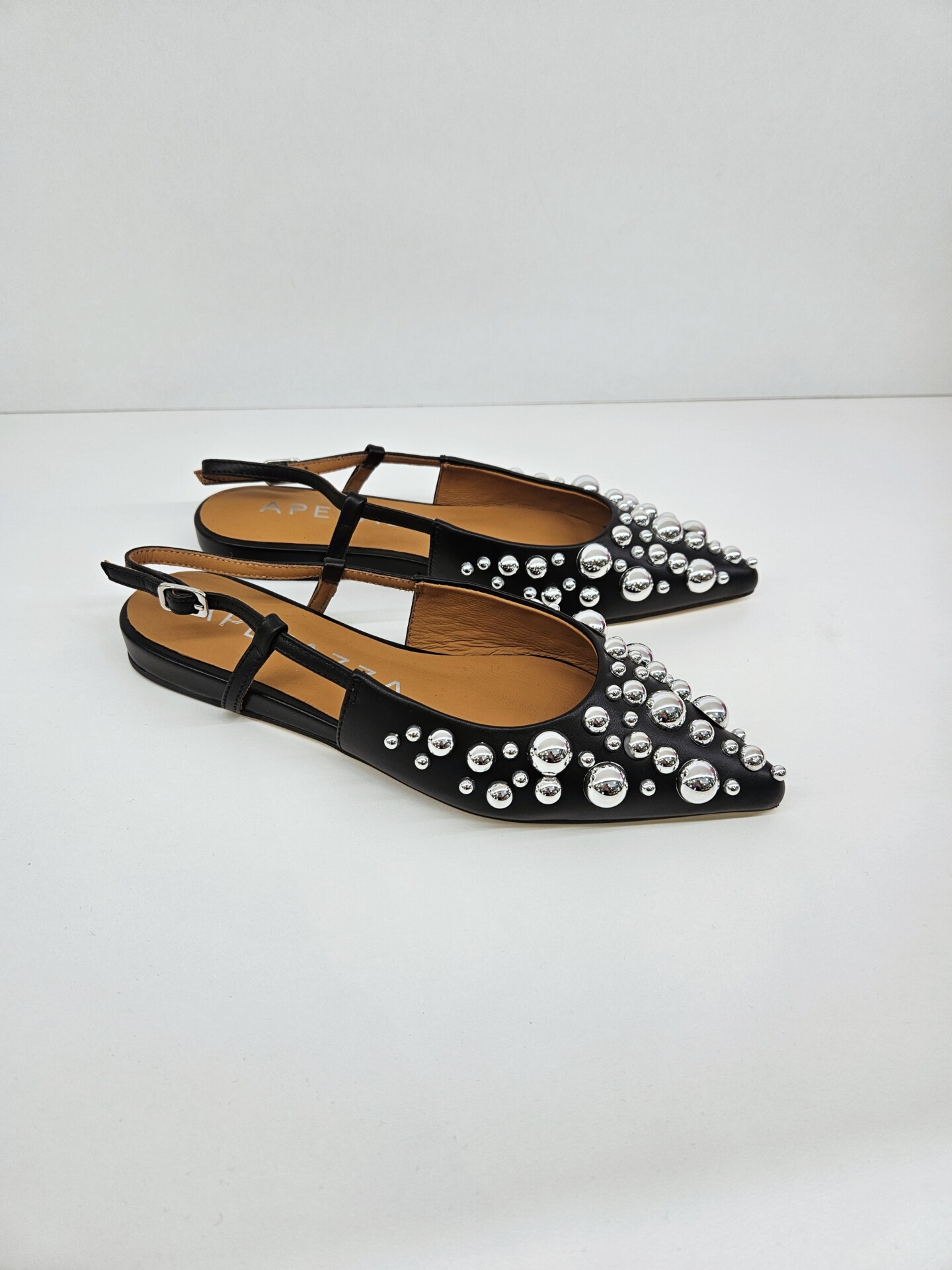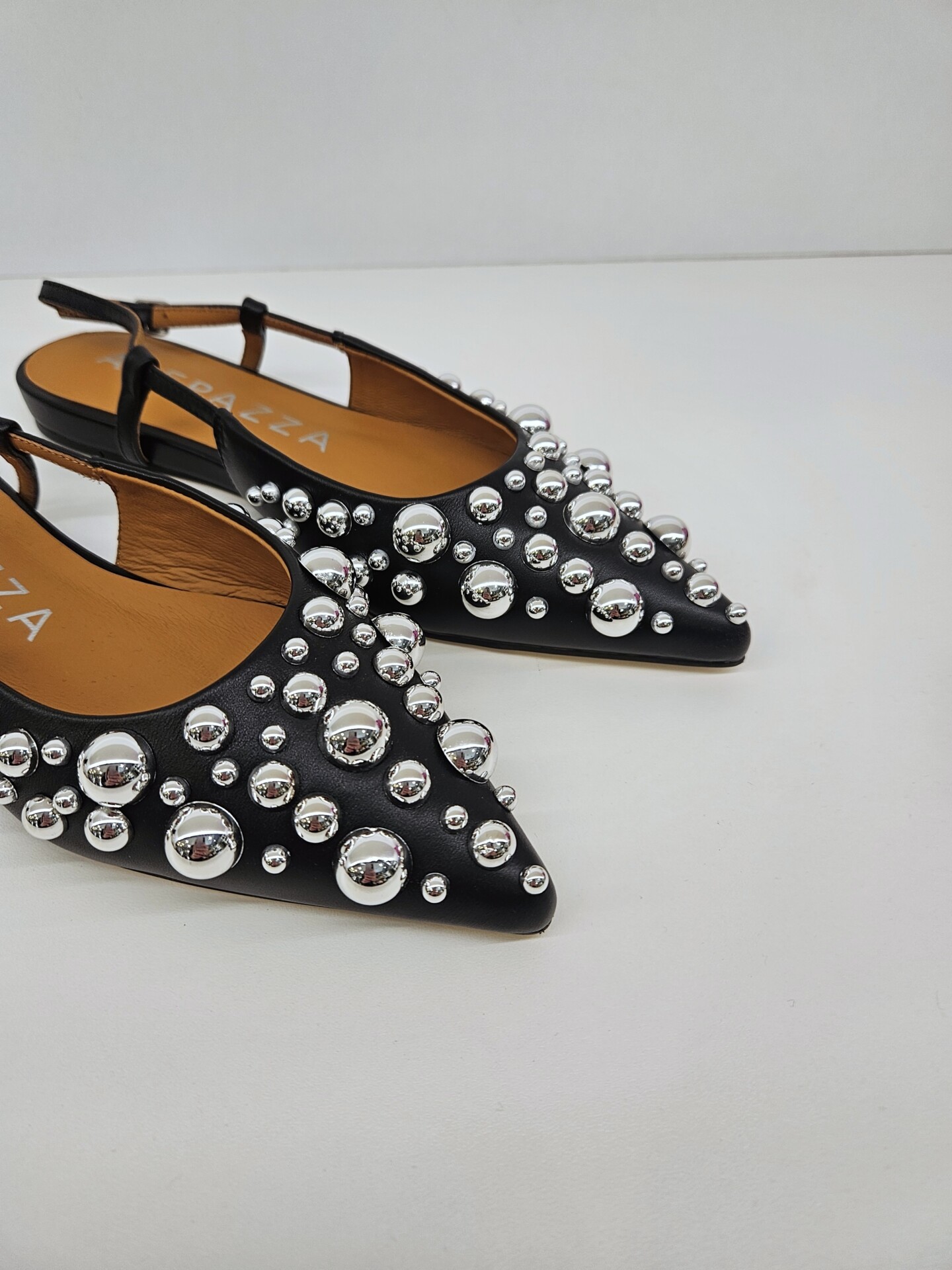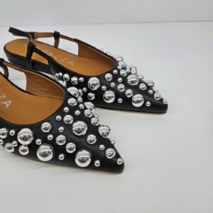 Preziosa e femminile la décolleté BEATRICE ha l’avampiede decorato con delle luminosissime semi-sfere di diversa dimensione. La forma è affusolata e appuntita, il cinturino alla caviglia è regolabile. Un vero gioiello che sa valorizzare anche dei piedi non perfetti!