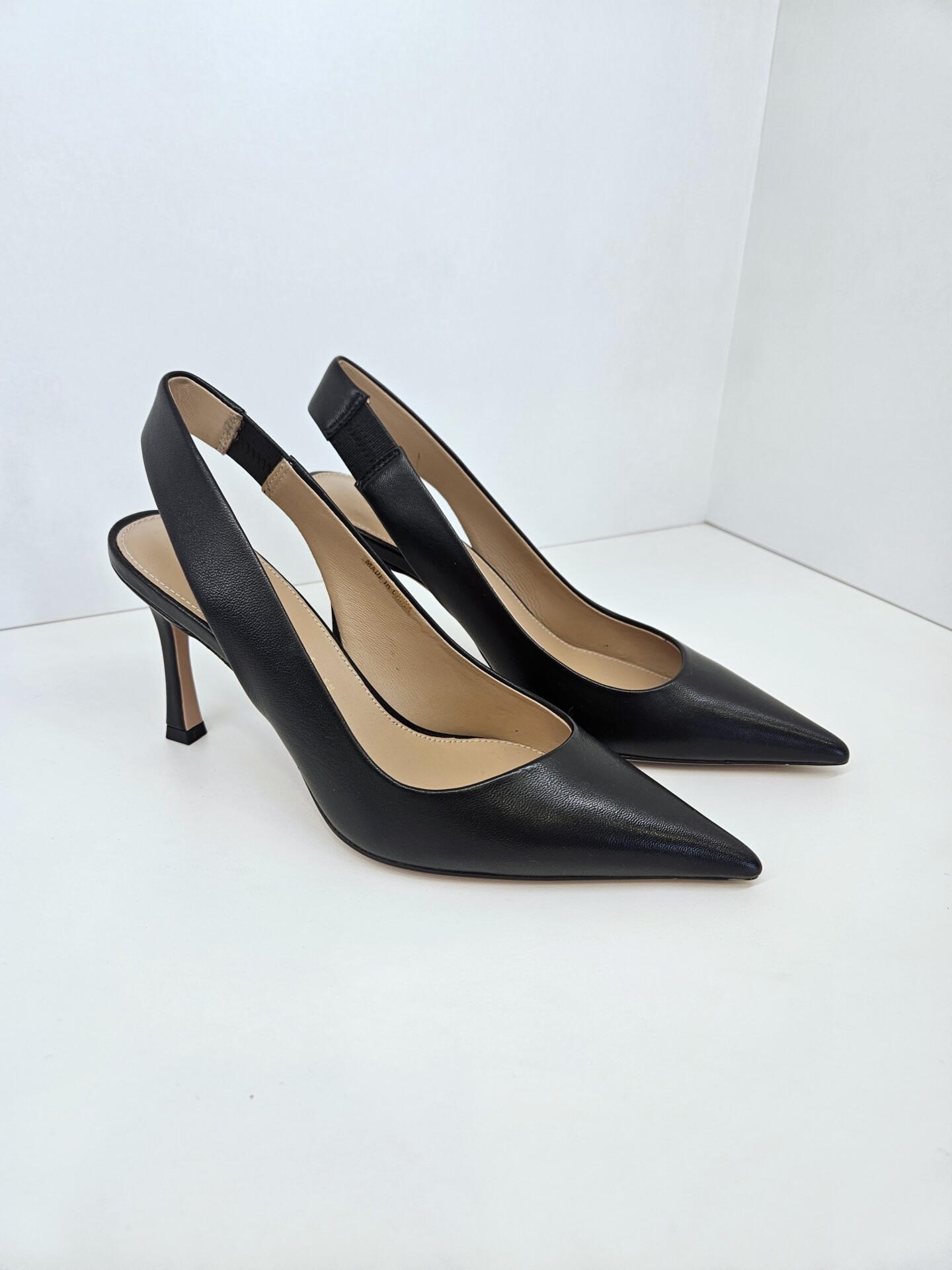 Elegante décollété slingback in pelle con laccio elasticato dietro. fodera e comodo soletto sono in pelle. tacco alto 8.5 cm con forma affusolata. un classico senza tempo che non può mancare nel guardaroba.