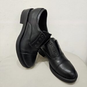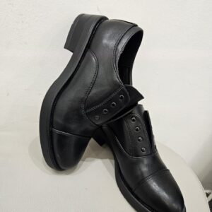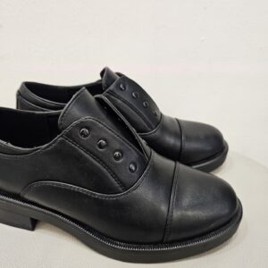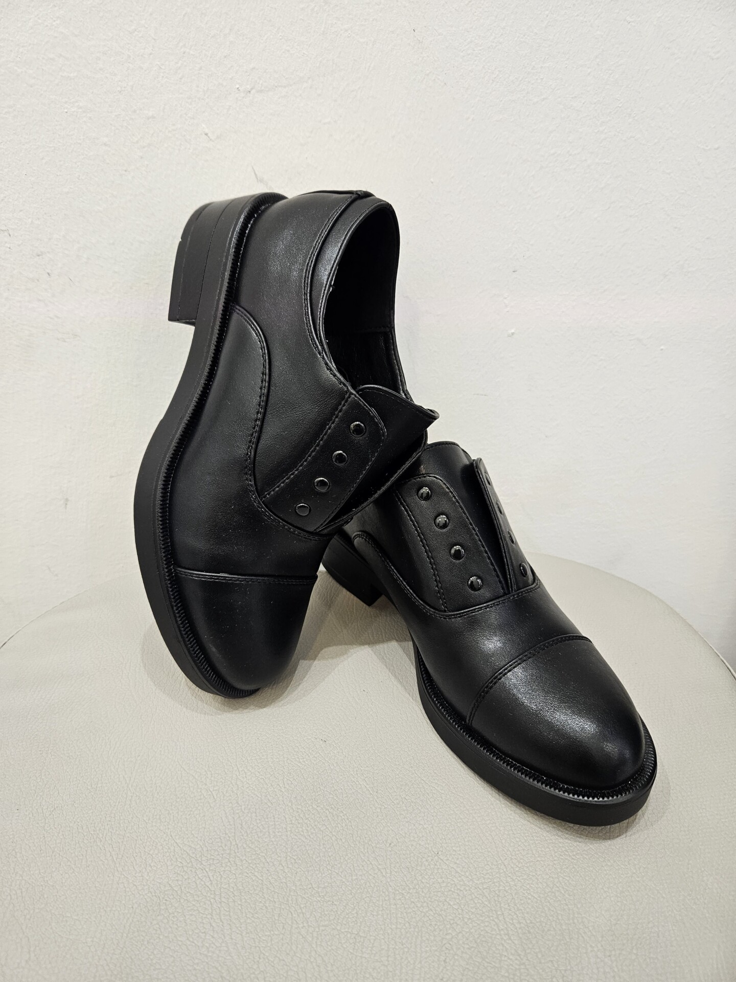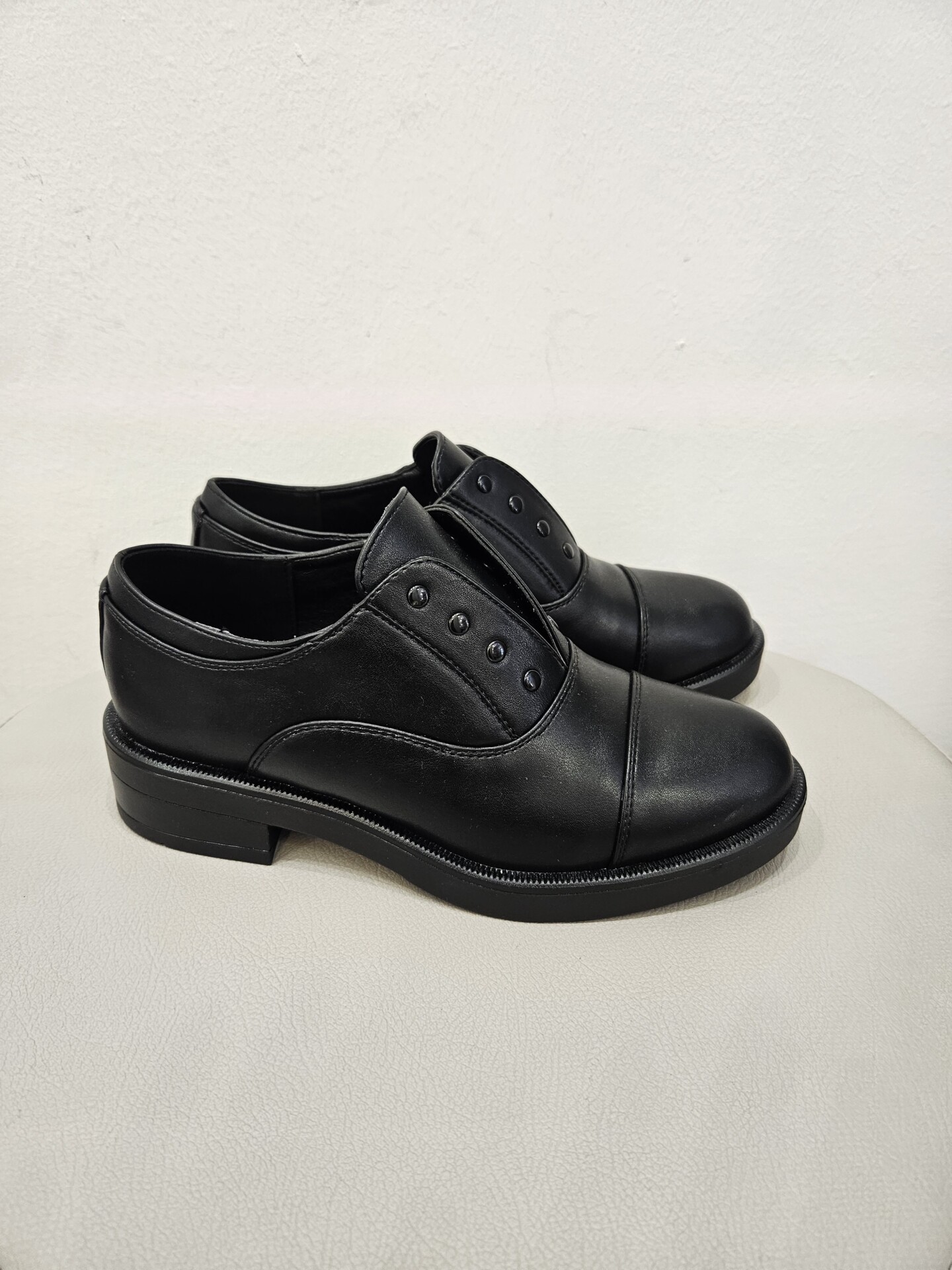 Francesina in similpelle arricchita da borchie ed elastico. il soletto è in pelle.
