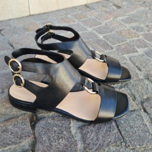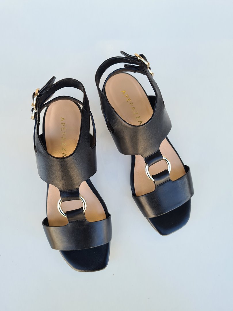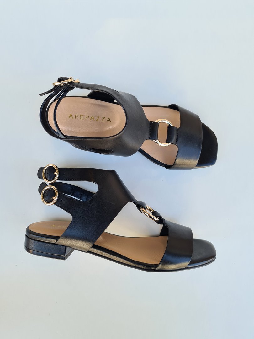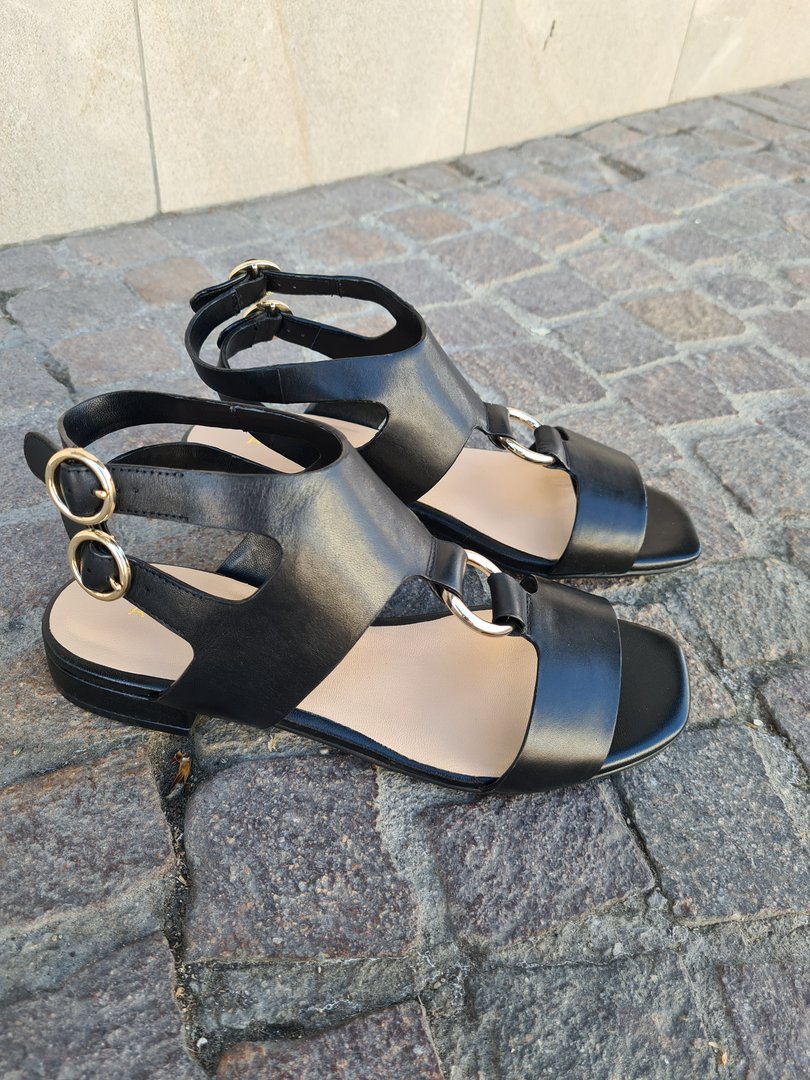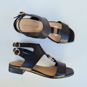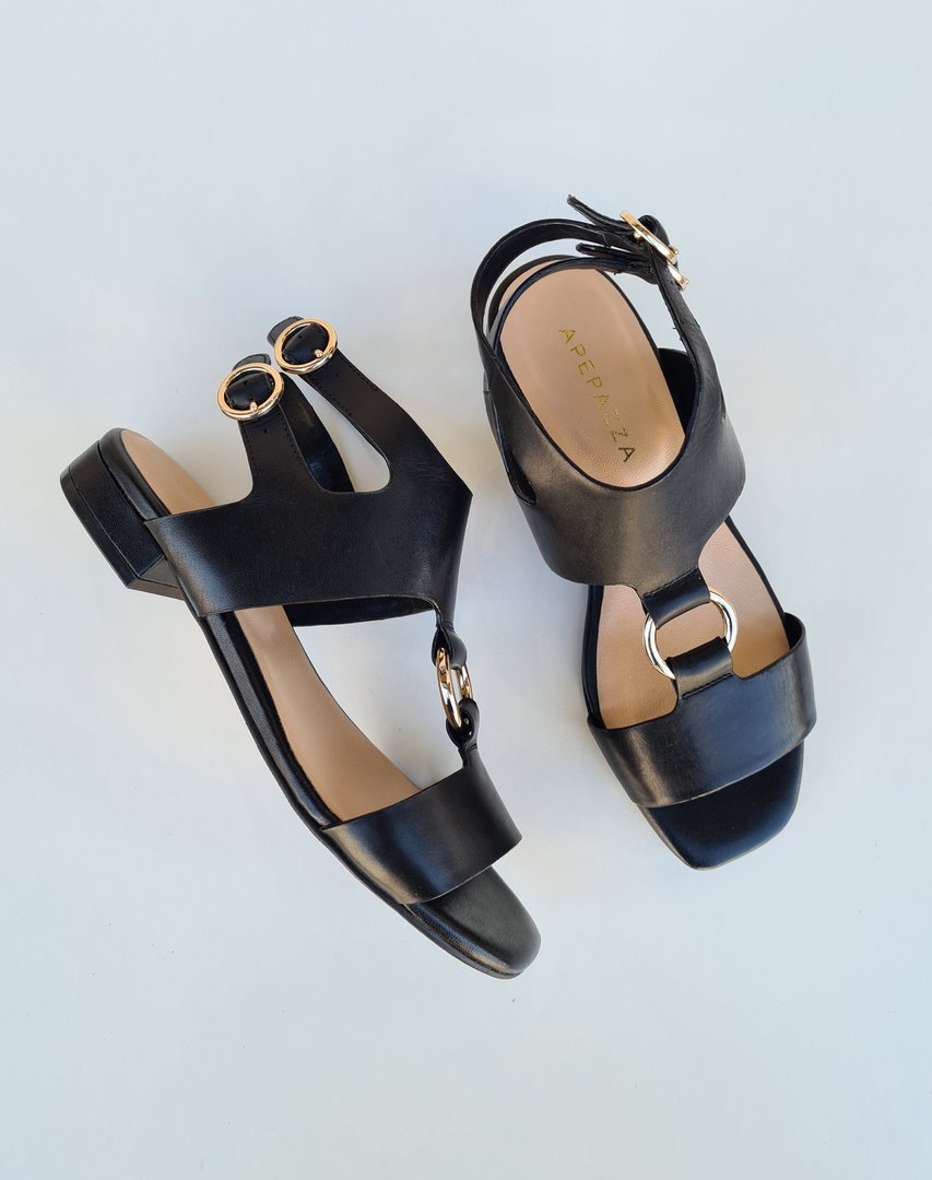 Dettagli ricercati per il sandalo PIPER, con tomaia in pelle tagliata a vivo, decorata da un anello sull’avampiede e da doppio cinturino posteriore che avvolge la caviglia.