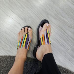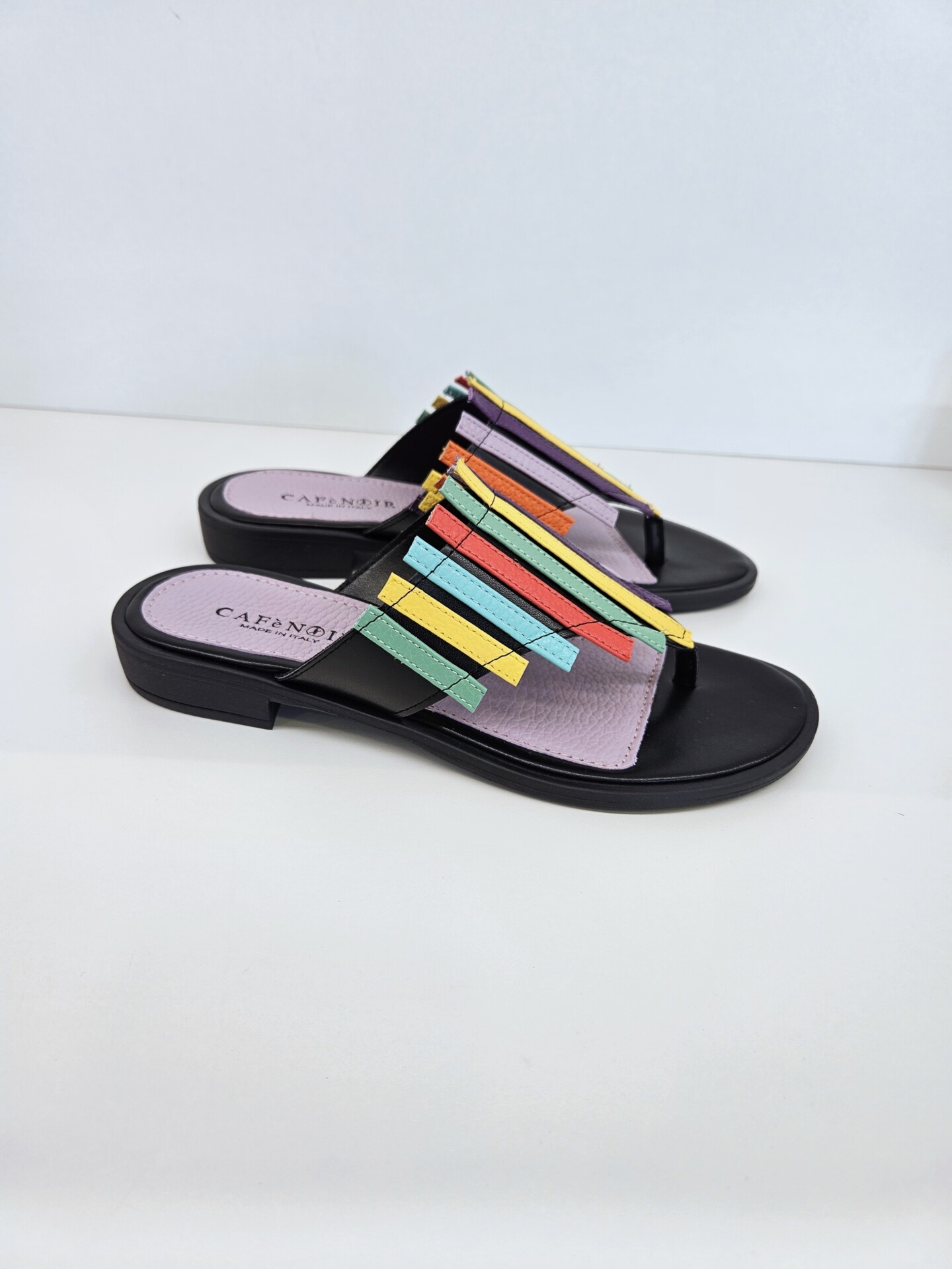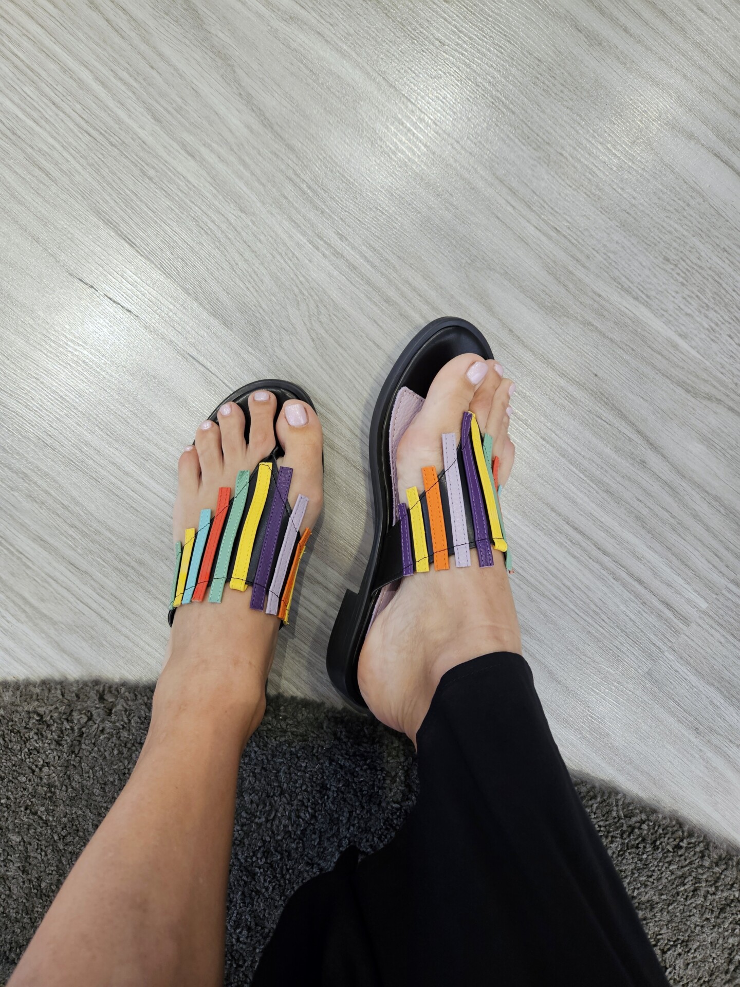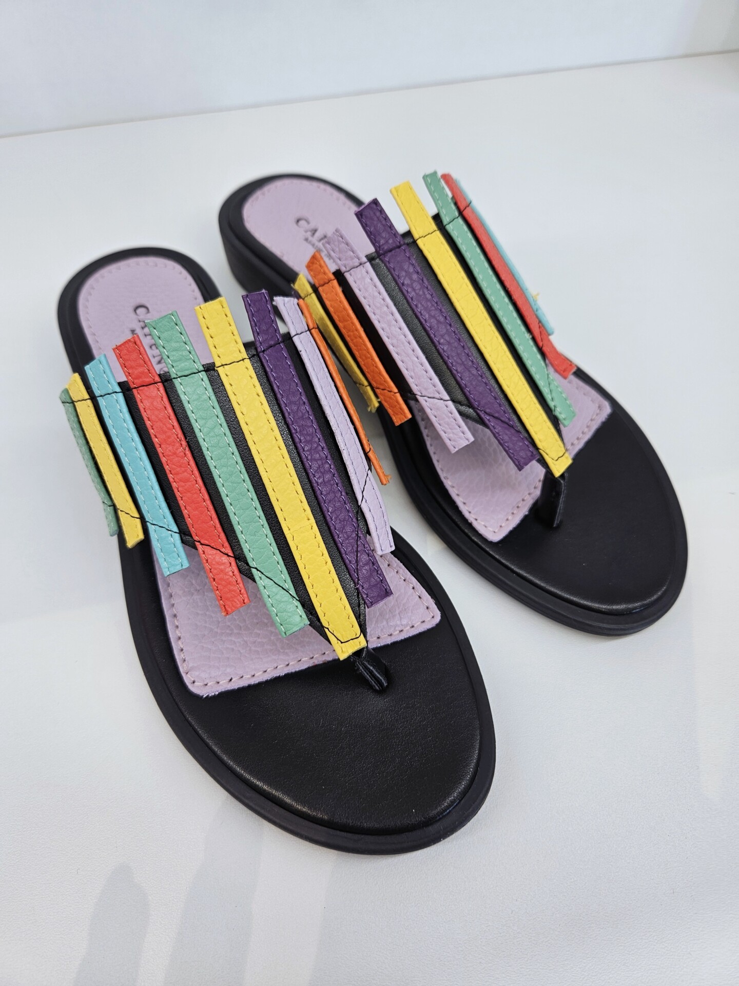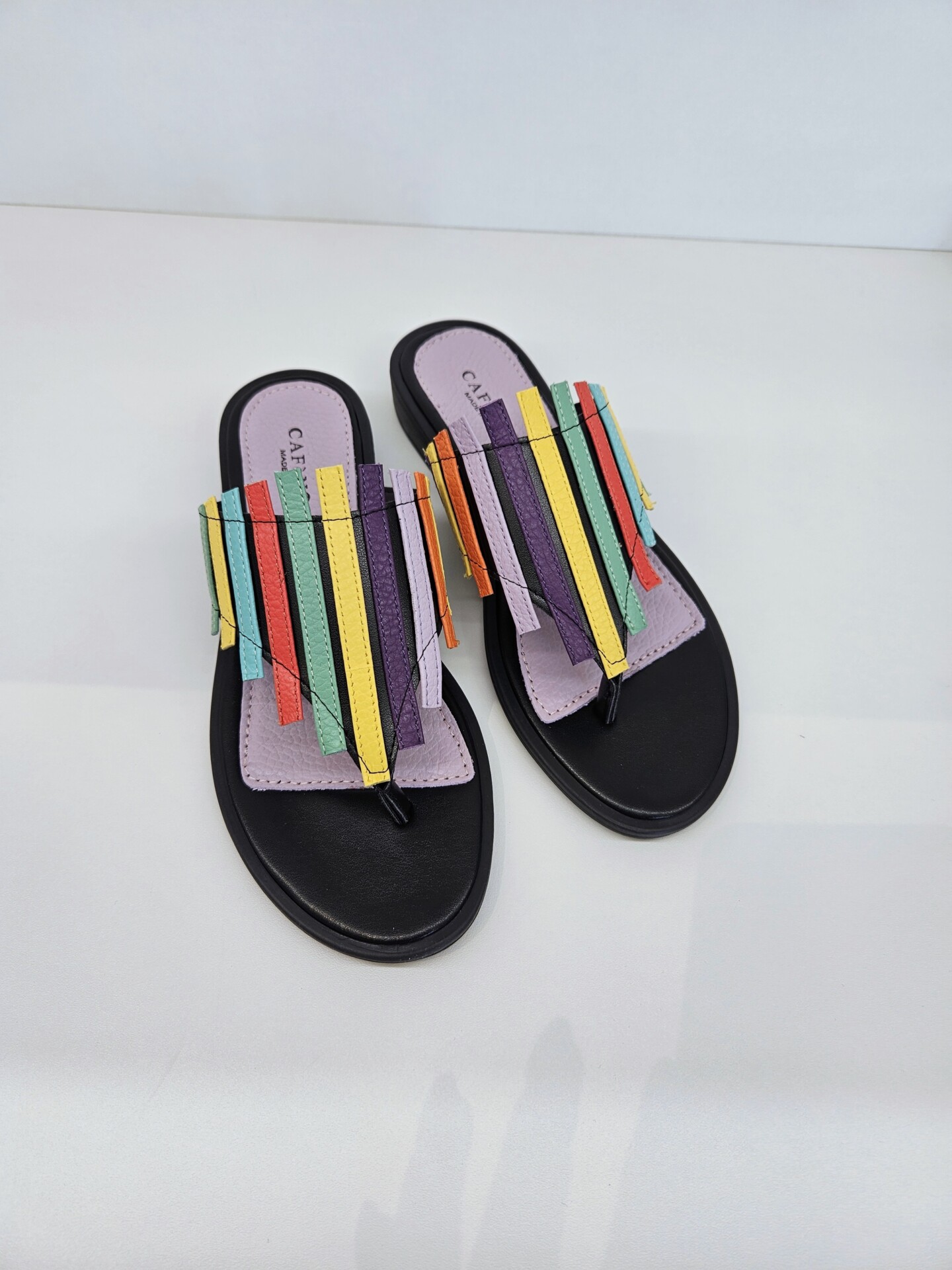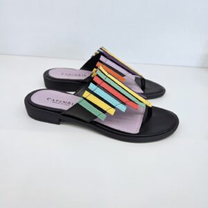 Infradito con tomaia a multi listini. eleganti e unici rendono questa calzatura il must have del tuo guardaroba estivo. pratici e comodi perfetti dalla mattina alla sera in città o al mare. tacco alto 25mm.
