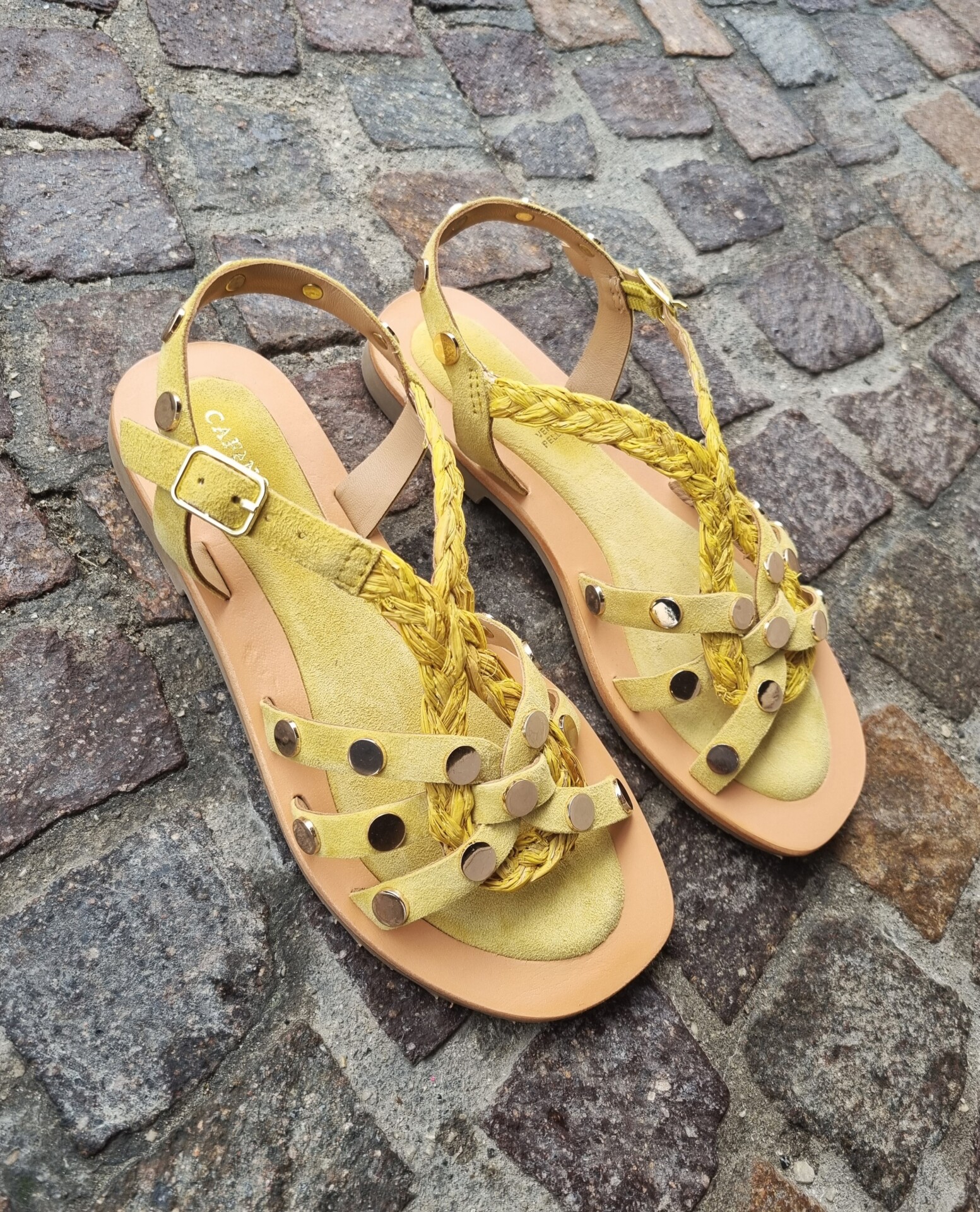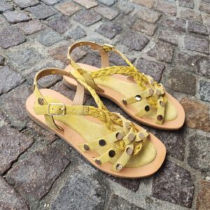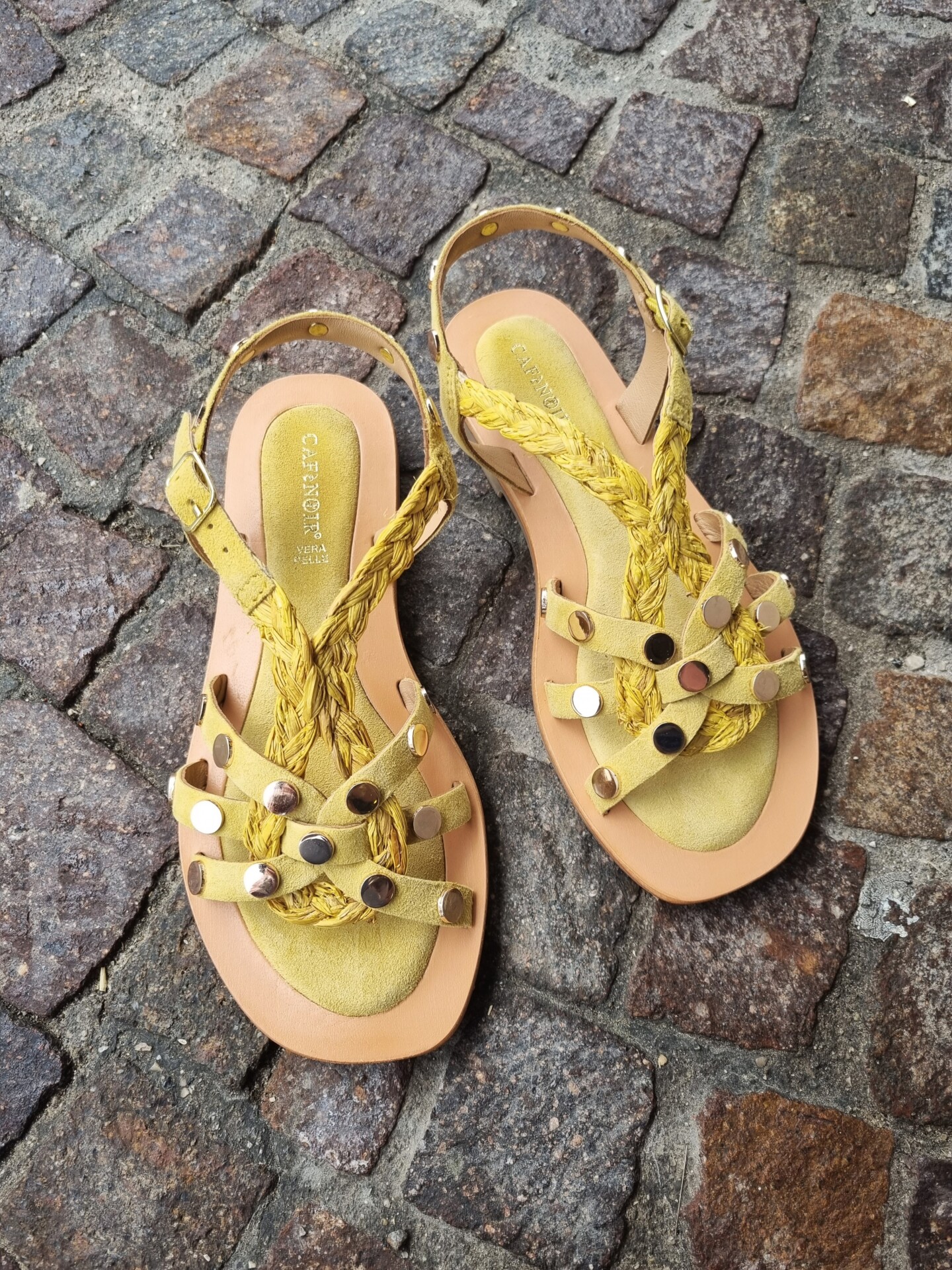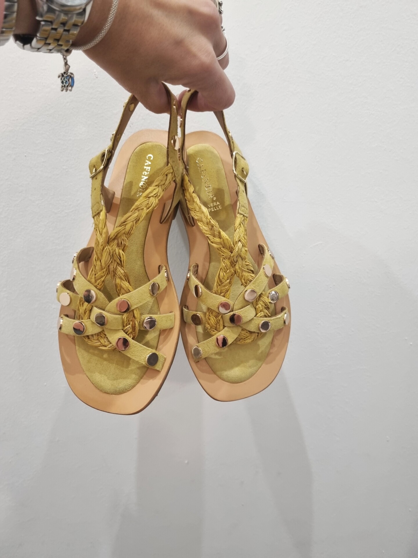 Scrivi per primo la recensione per “CAFèNOIR – Sandali incrocio in pelle scamosciata e raffia gialla”