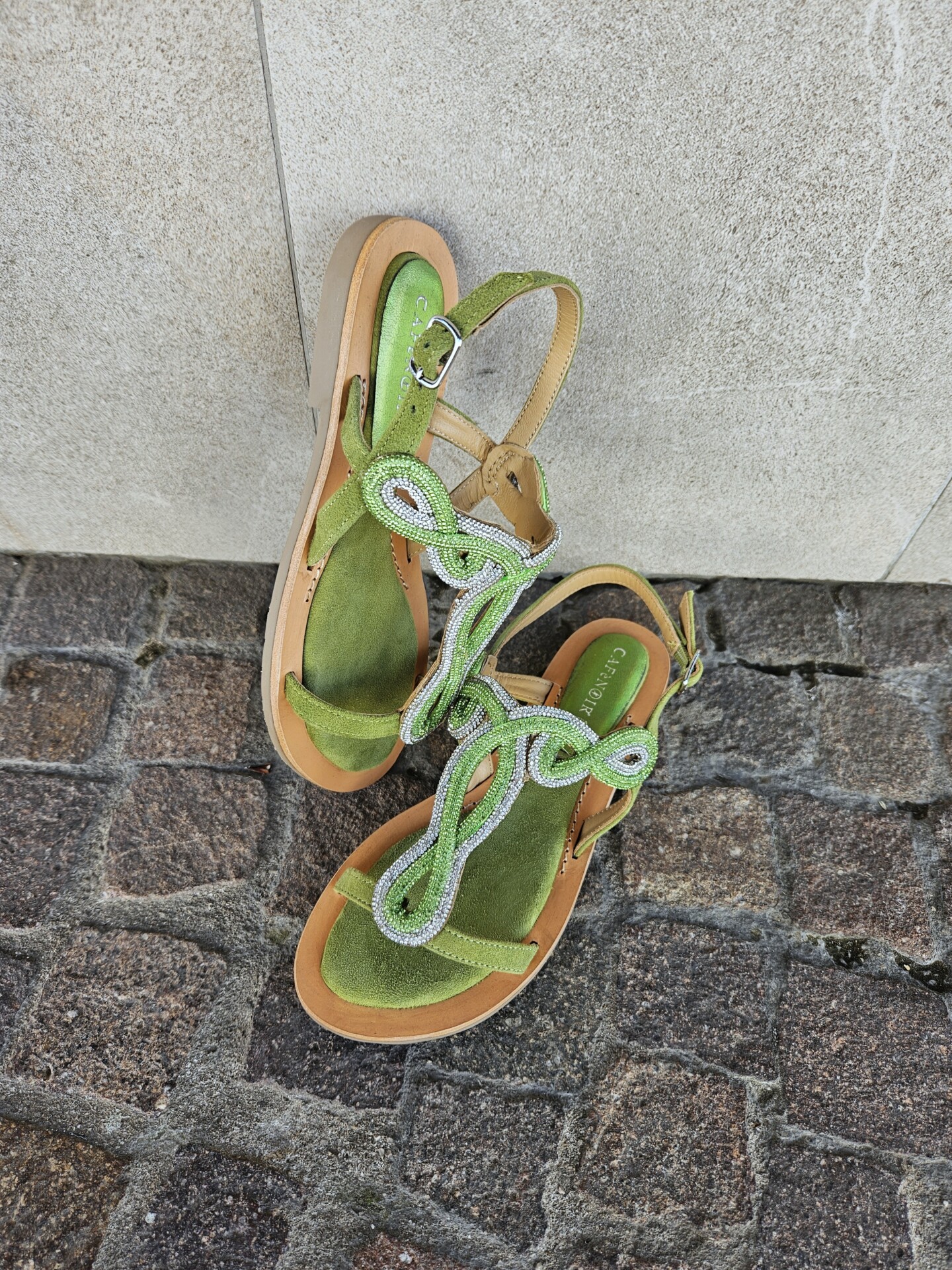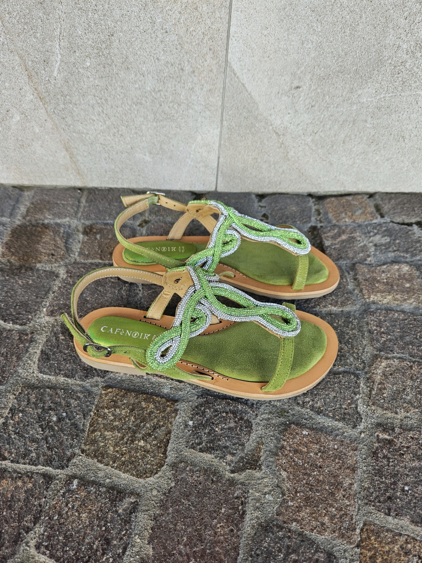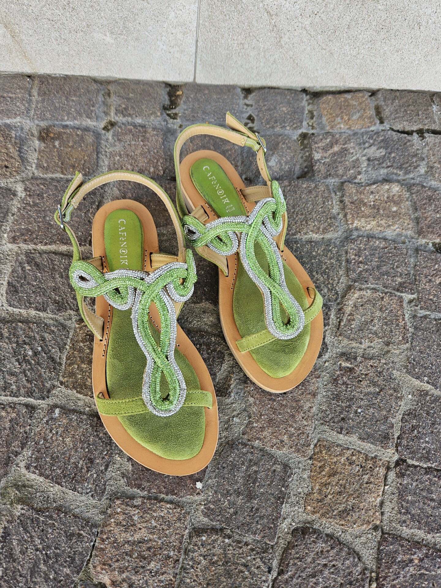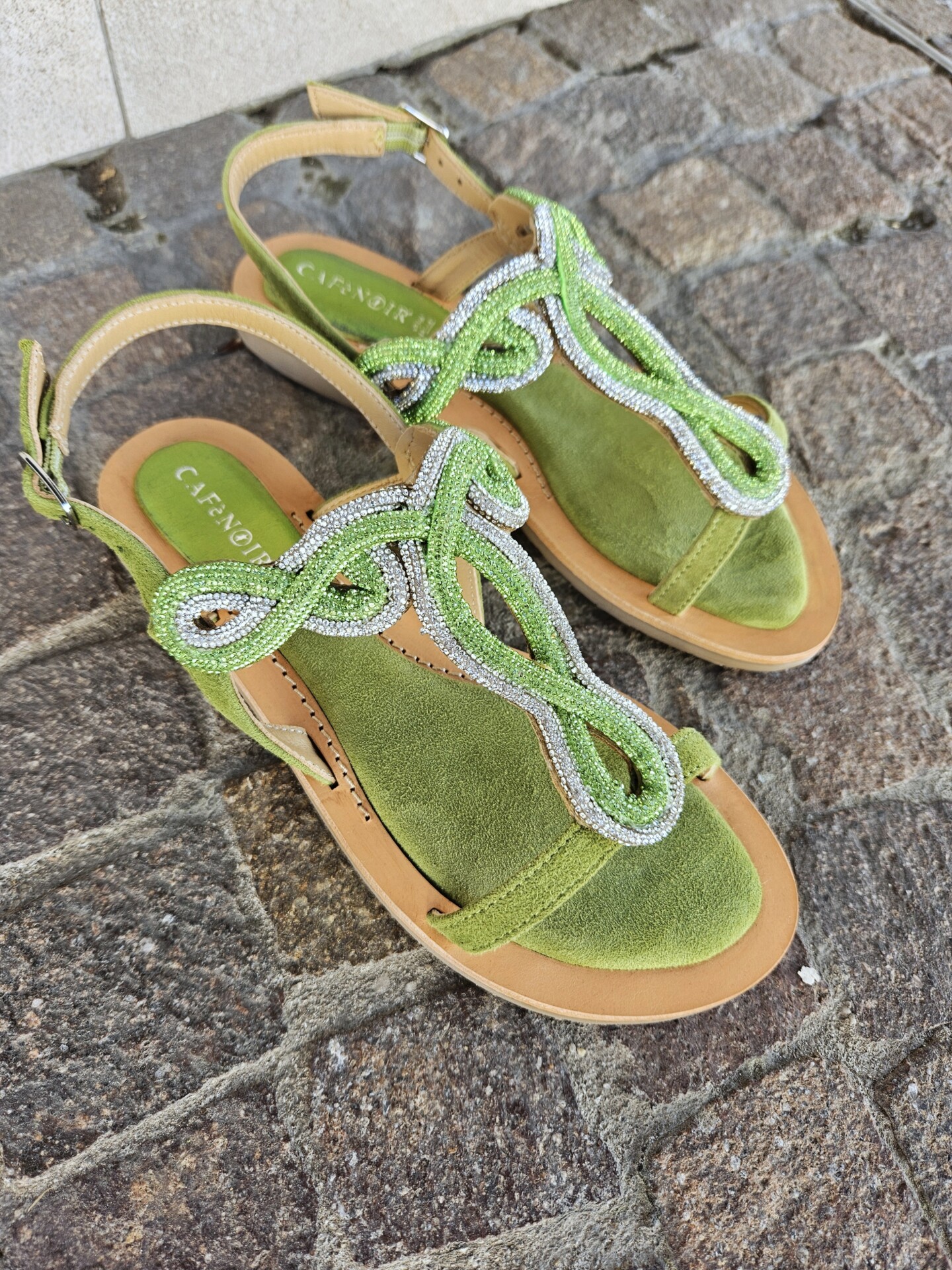 Scrivi per primo la recensione per “CAFèNOIR – Sandali infradito in camoscio con accessorio strass verde”