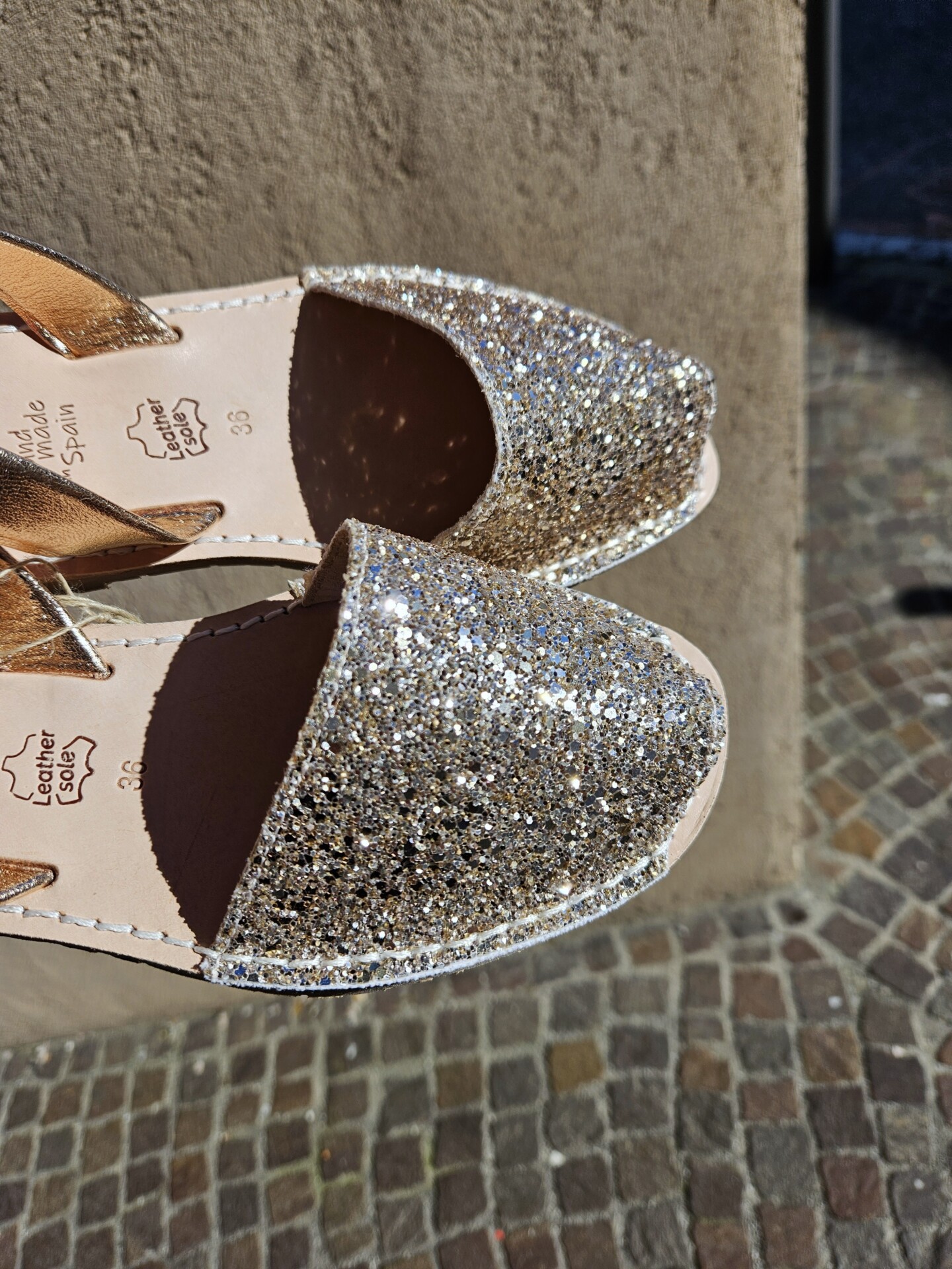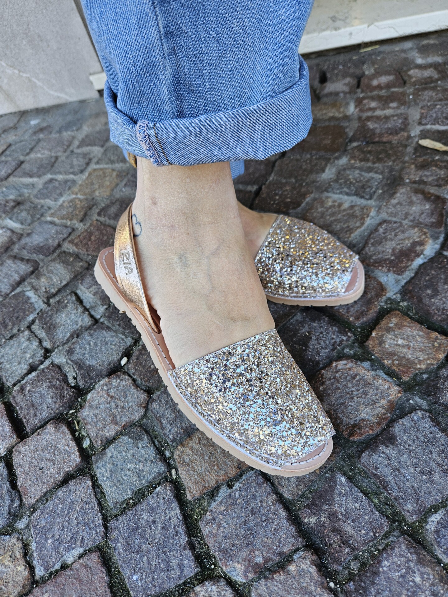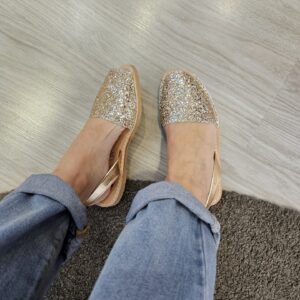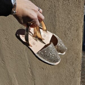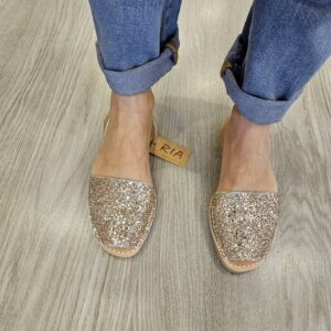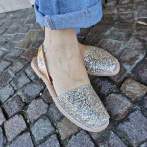 Minorchine tradizionali con un tocco unico e diverso. La tomaia abbinata in glitter color pesca si abbina al cinturino posteriore in pelle metallizzata, sempre color salmone. Delle minorchine a fantasia che aggiungono un tocco di lucentezza a qualsiasi look.