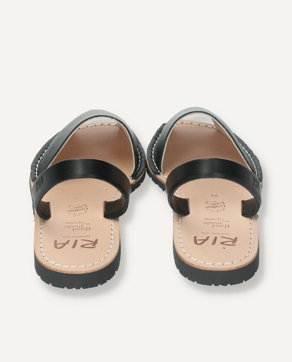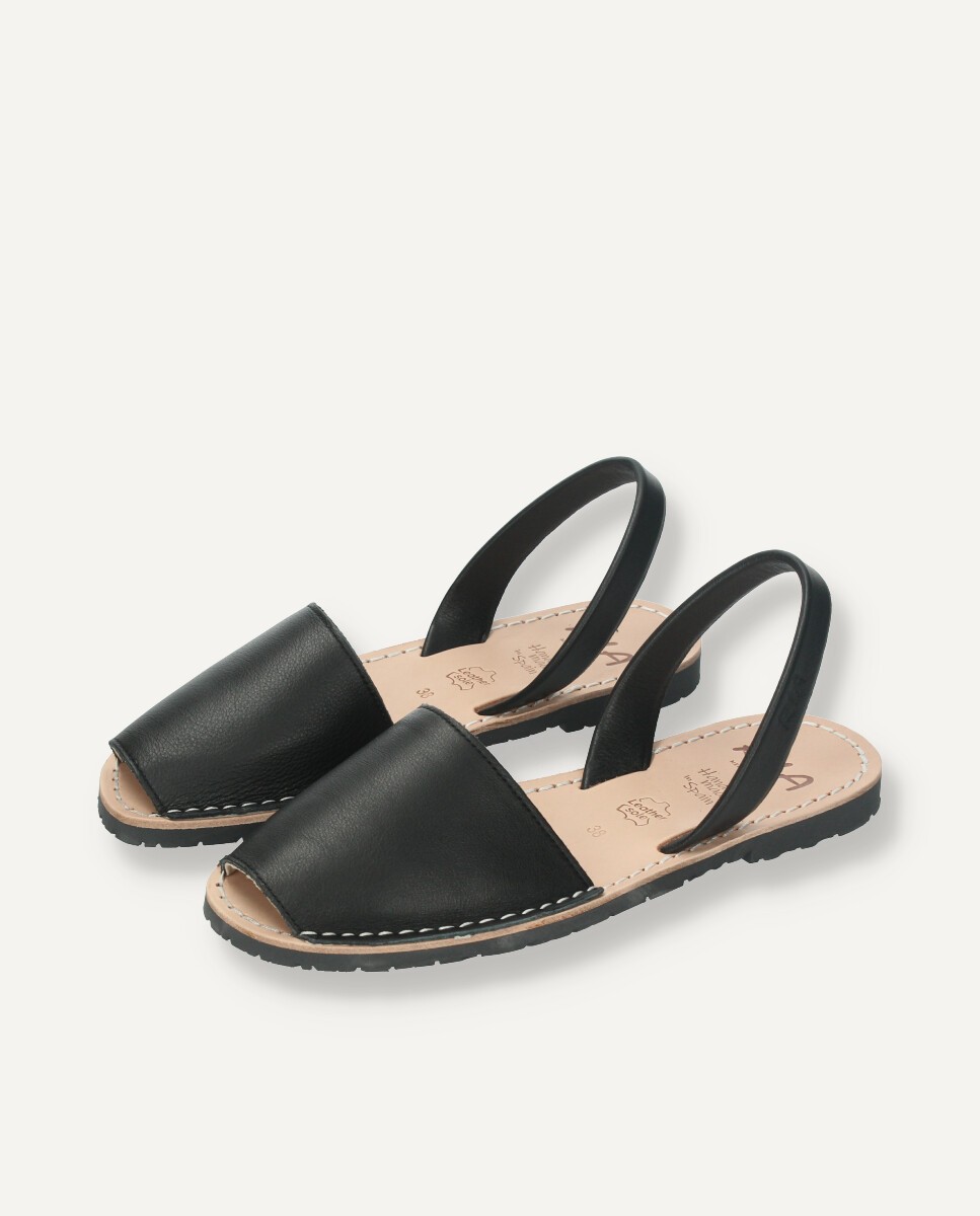 Minorchine tradizionali in pelle nera da donna. La suola in gomma nera che imita gli pneumatici dei primi modelli originali dei sandali e la soletta in cuoio 100% naturale rendono queste minorchine di qualità unica. Tutte le nostre minorchine hanno il sigillo di garanzia “Avarca de Menorca” che certifica la qualità del prodotto e la sua provenienza geografica.