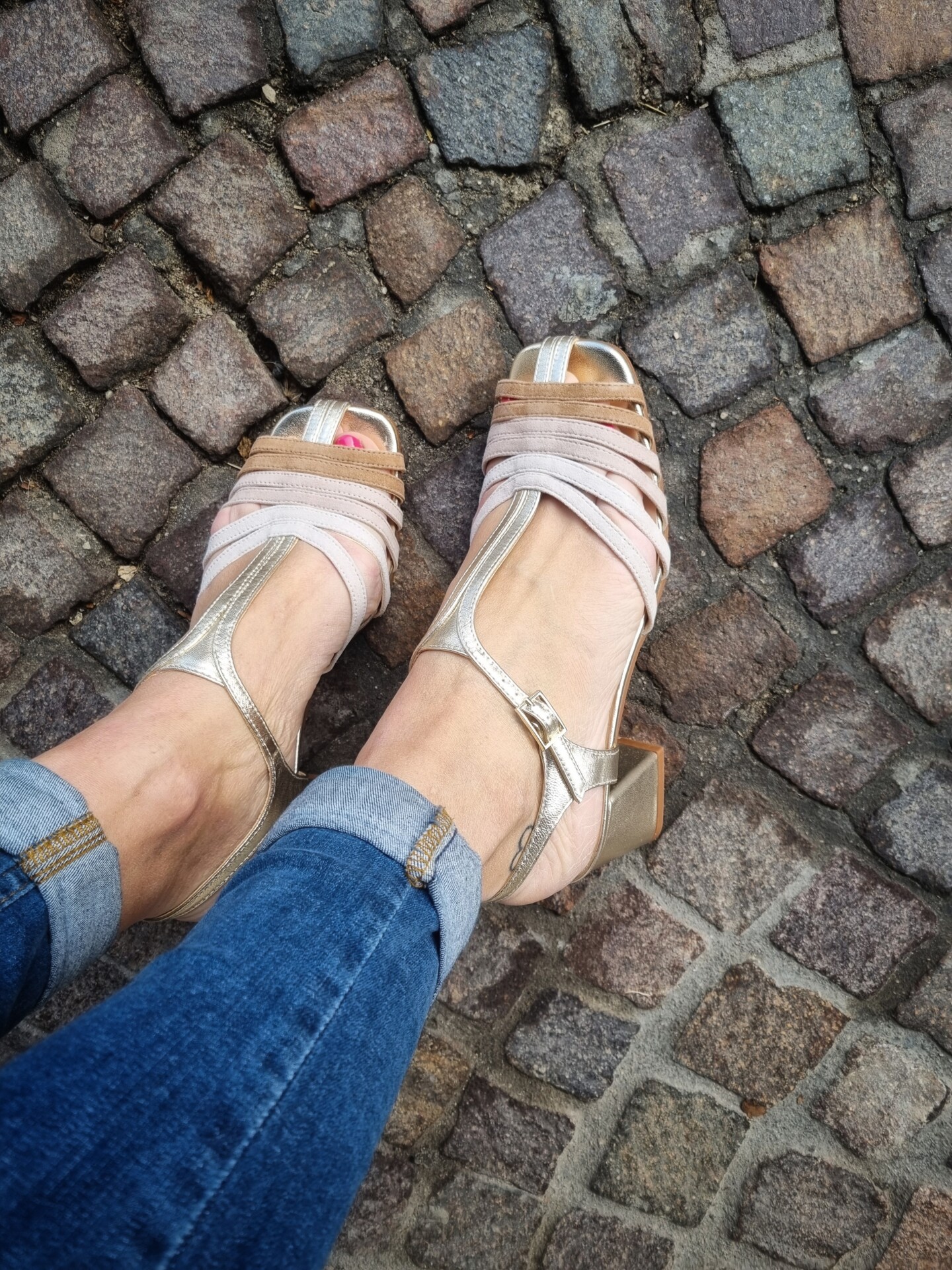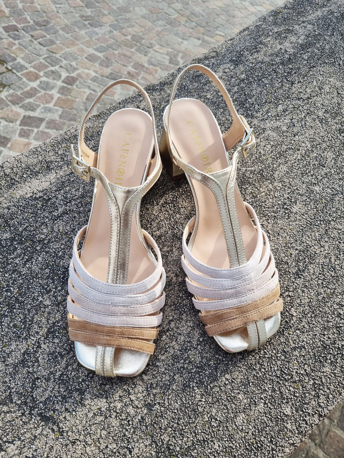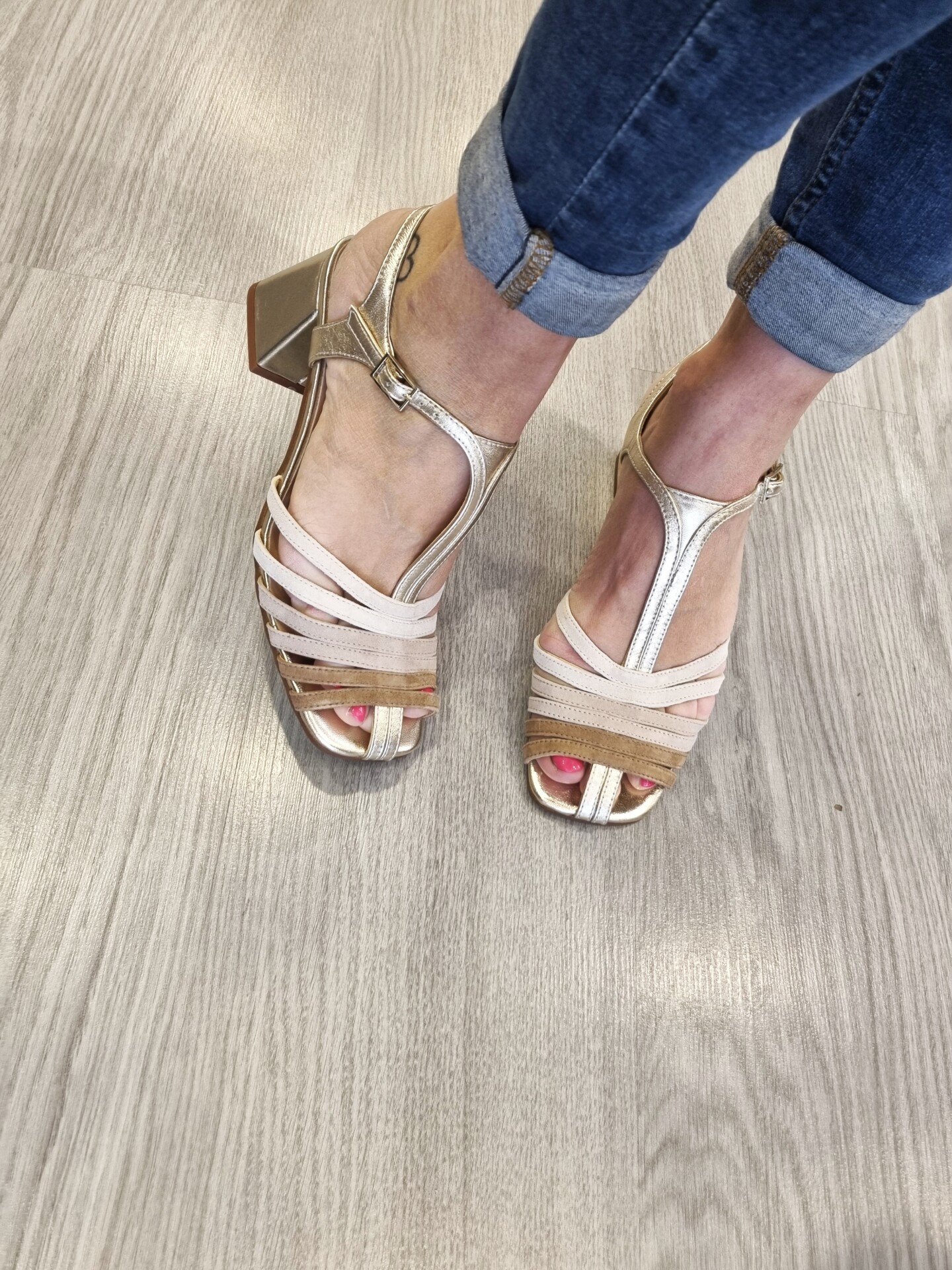 Sandali gabbia modello gilda realizzati in camoscio e pelle laminata tacco 5 cm fasciato pelle
