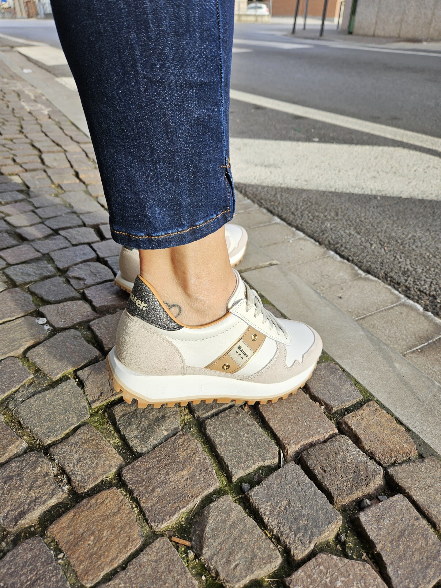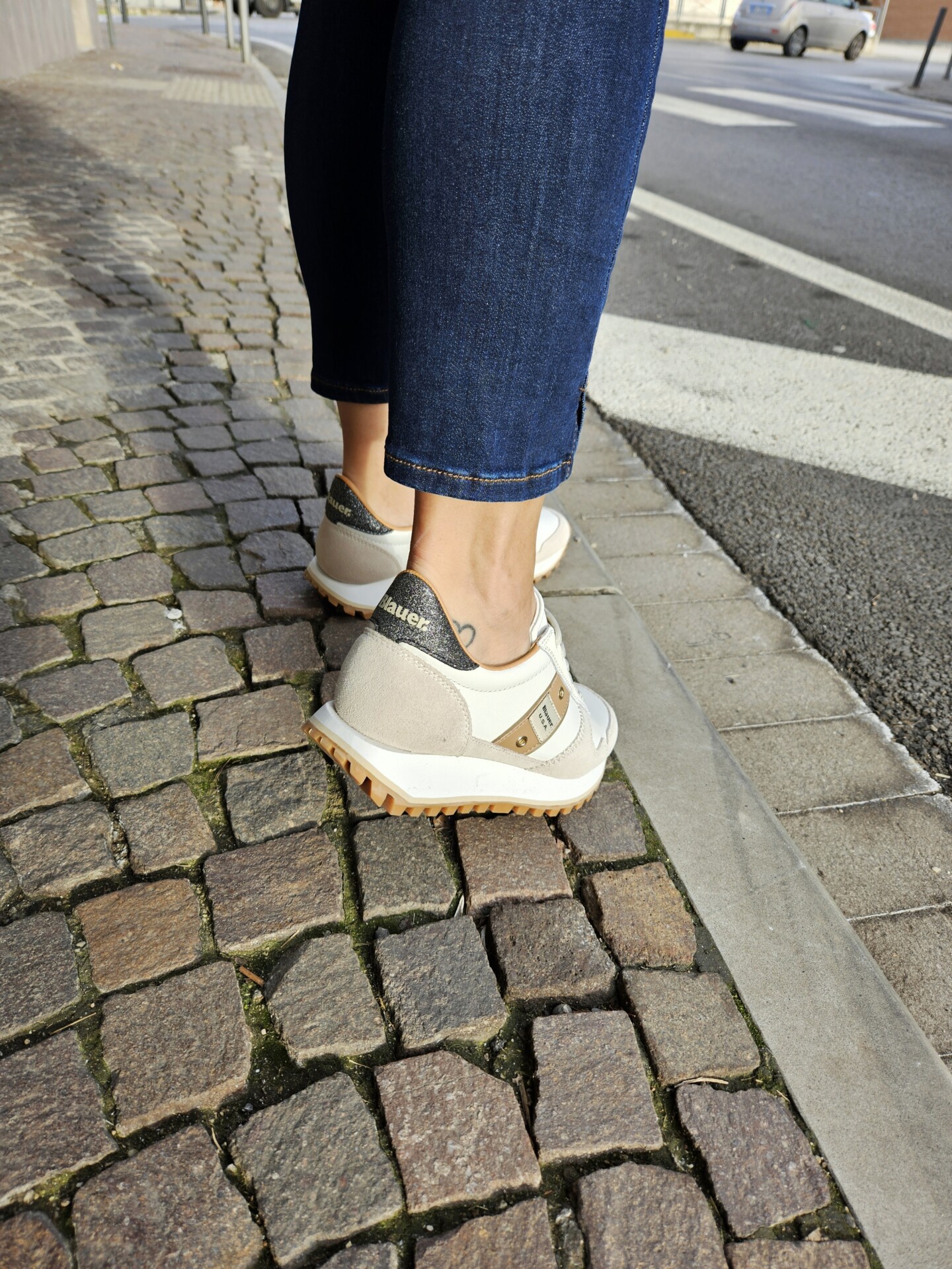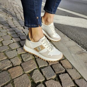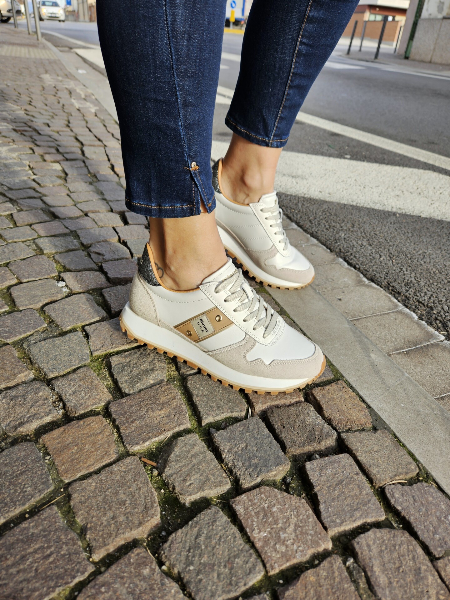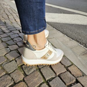 Le sneaker Millen presentano un’estetica vivace e dinamica, combinando tonalità femminili con dettagli in contrasto. Realizzate in un mix materico di pelle e suede, presentano una patch laterale logata con occhielli dorati e un tallone rifinito in glitter. La suola spessa con battistrada a contrasto assicura una camminata confortevole e un look sporty-glam che non passa inosservato.