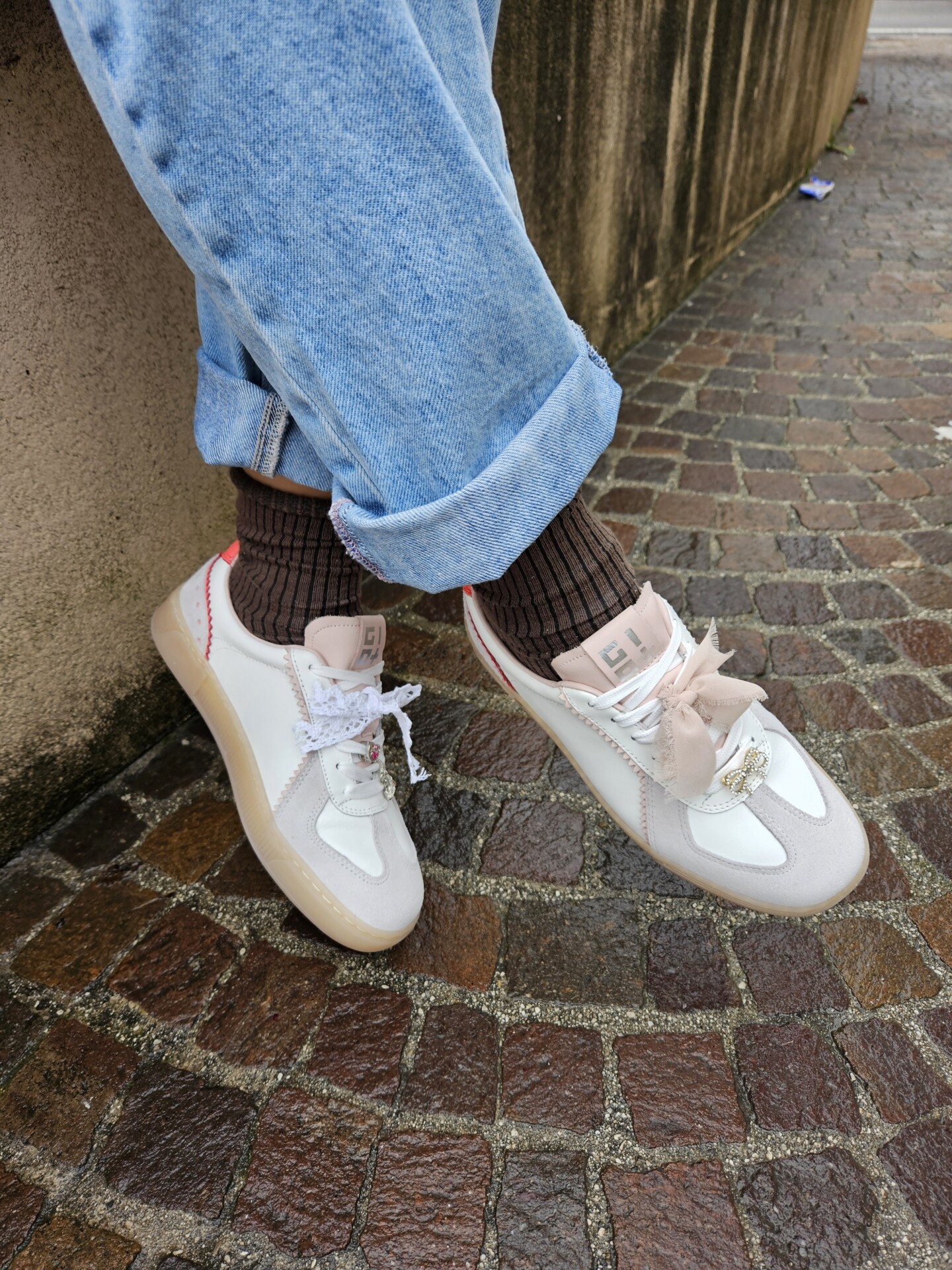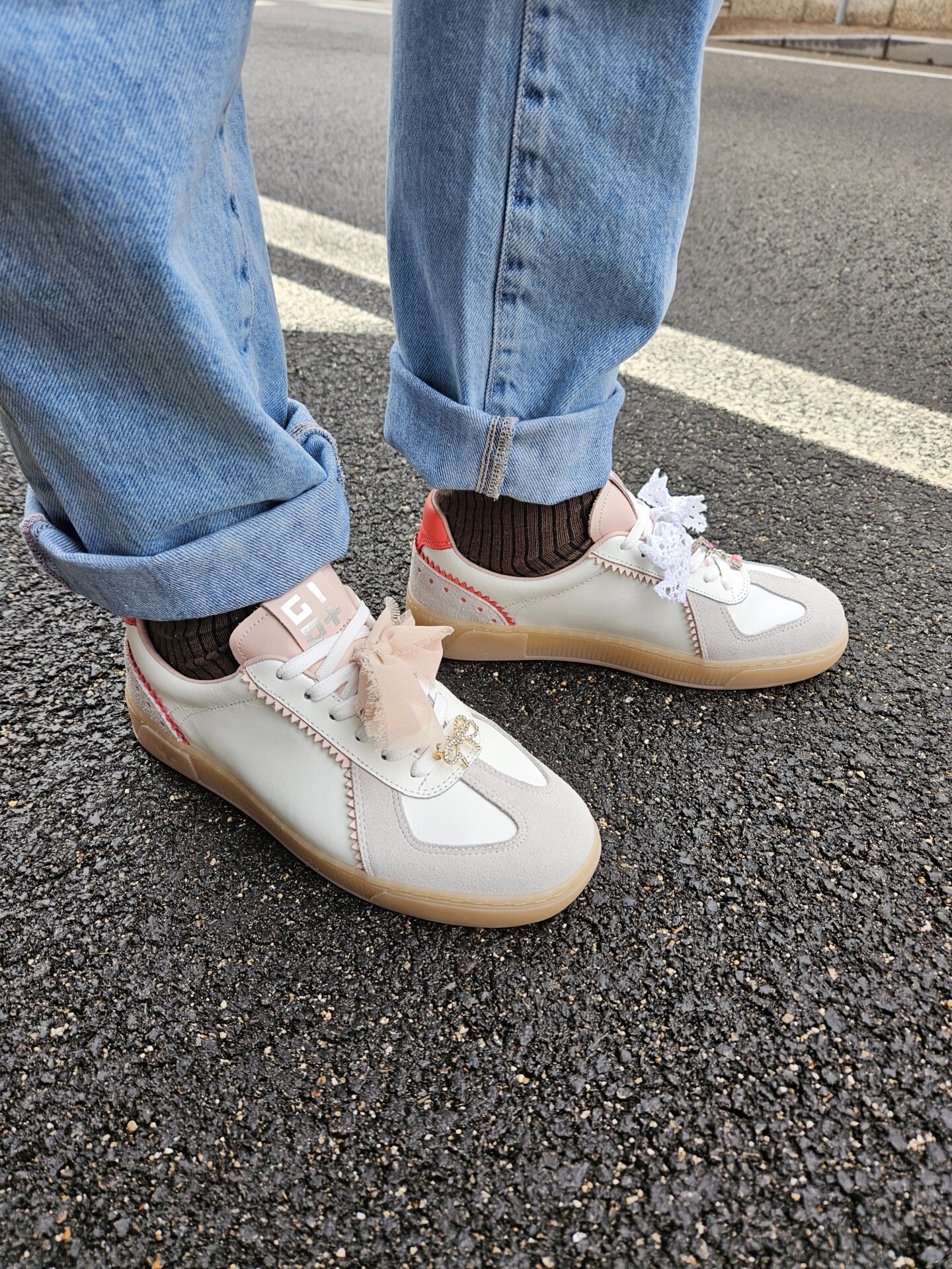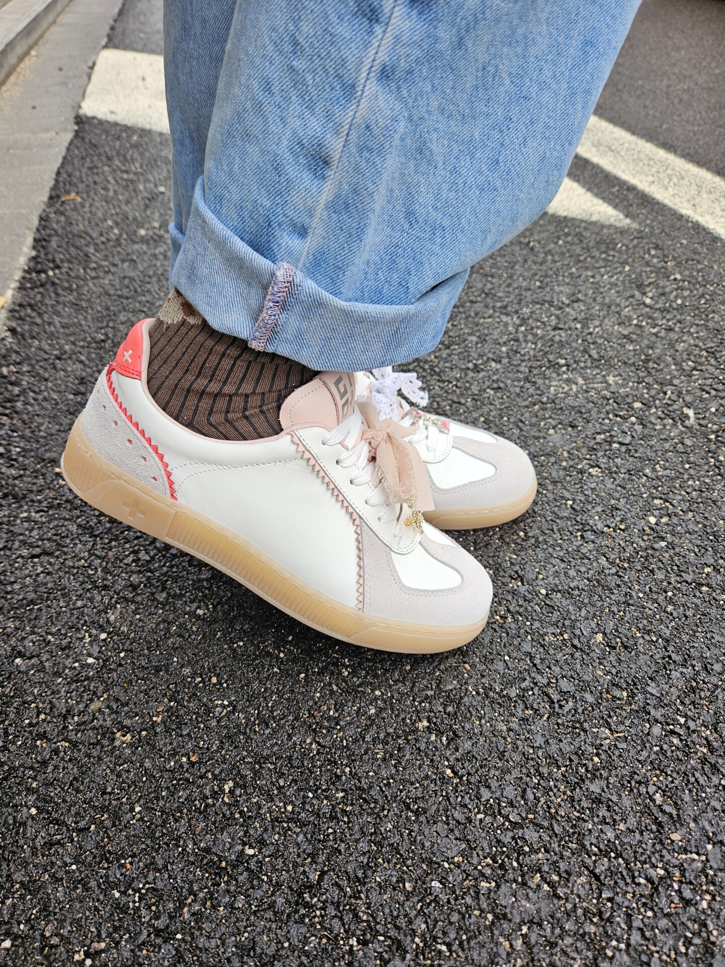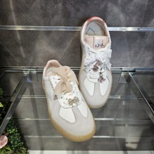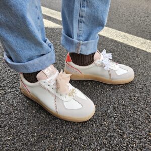 Il fondo platform è in leggerissima gomma di colore beige e rialza il tallone dal suolo di 4 cm. Internamente è foderata in pelle. Soletta interna estraibile.