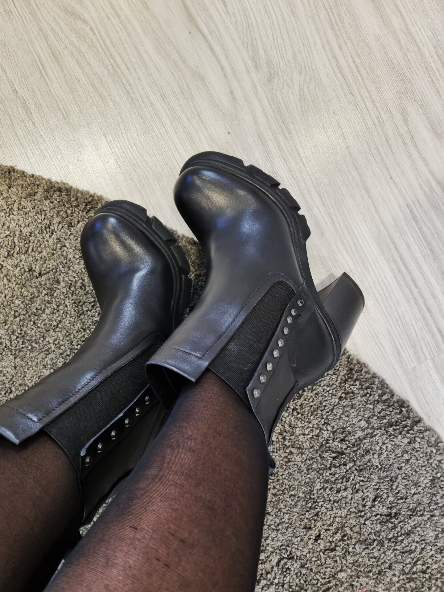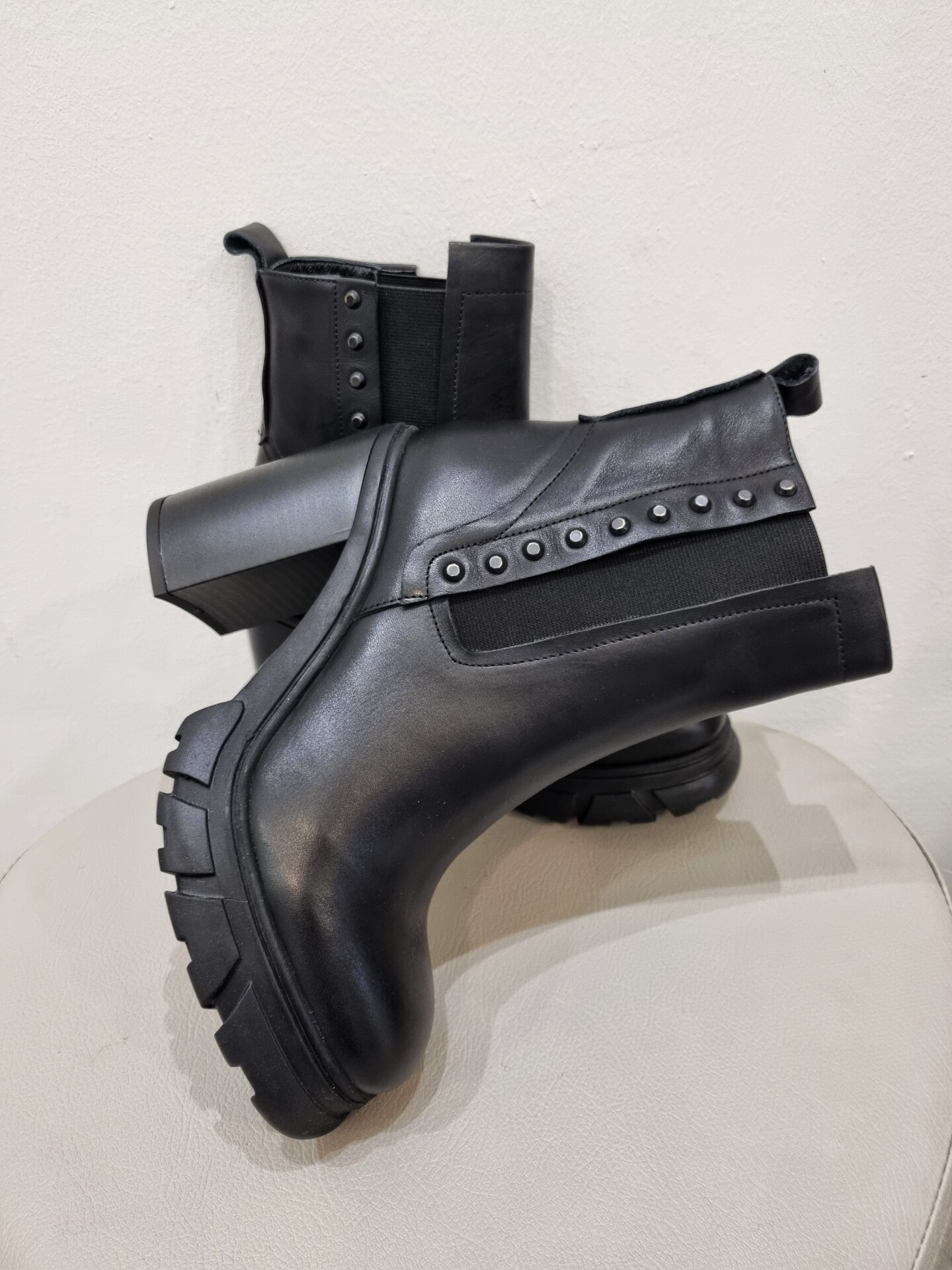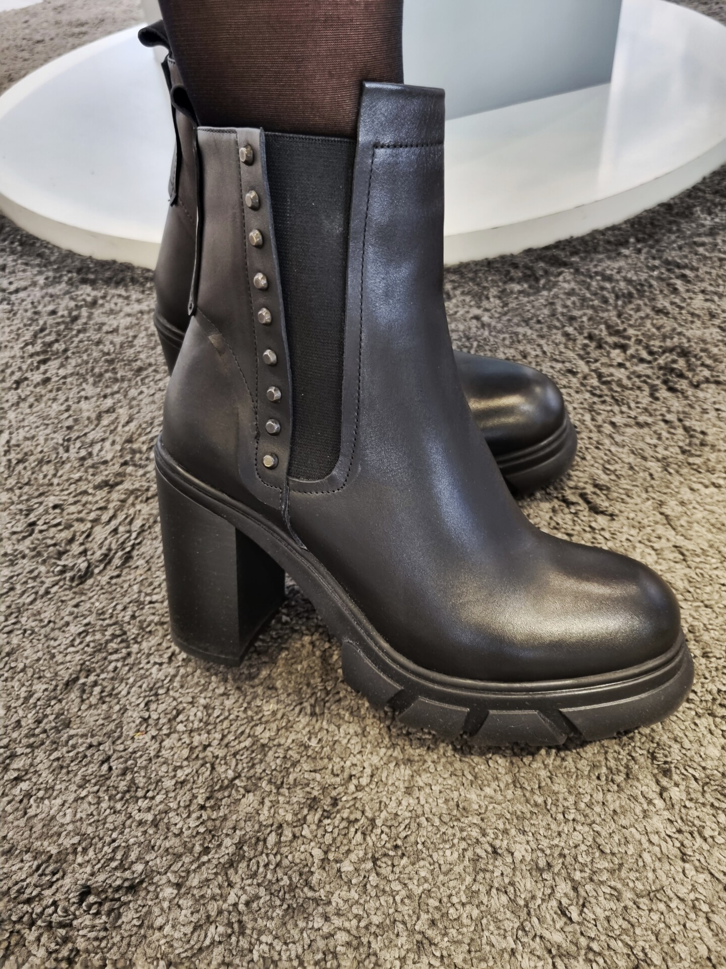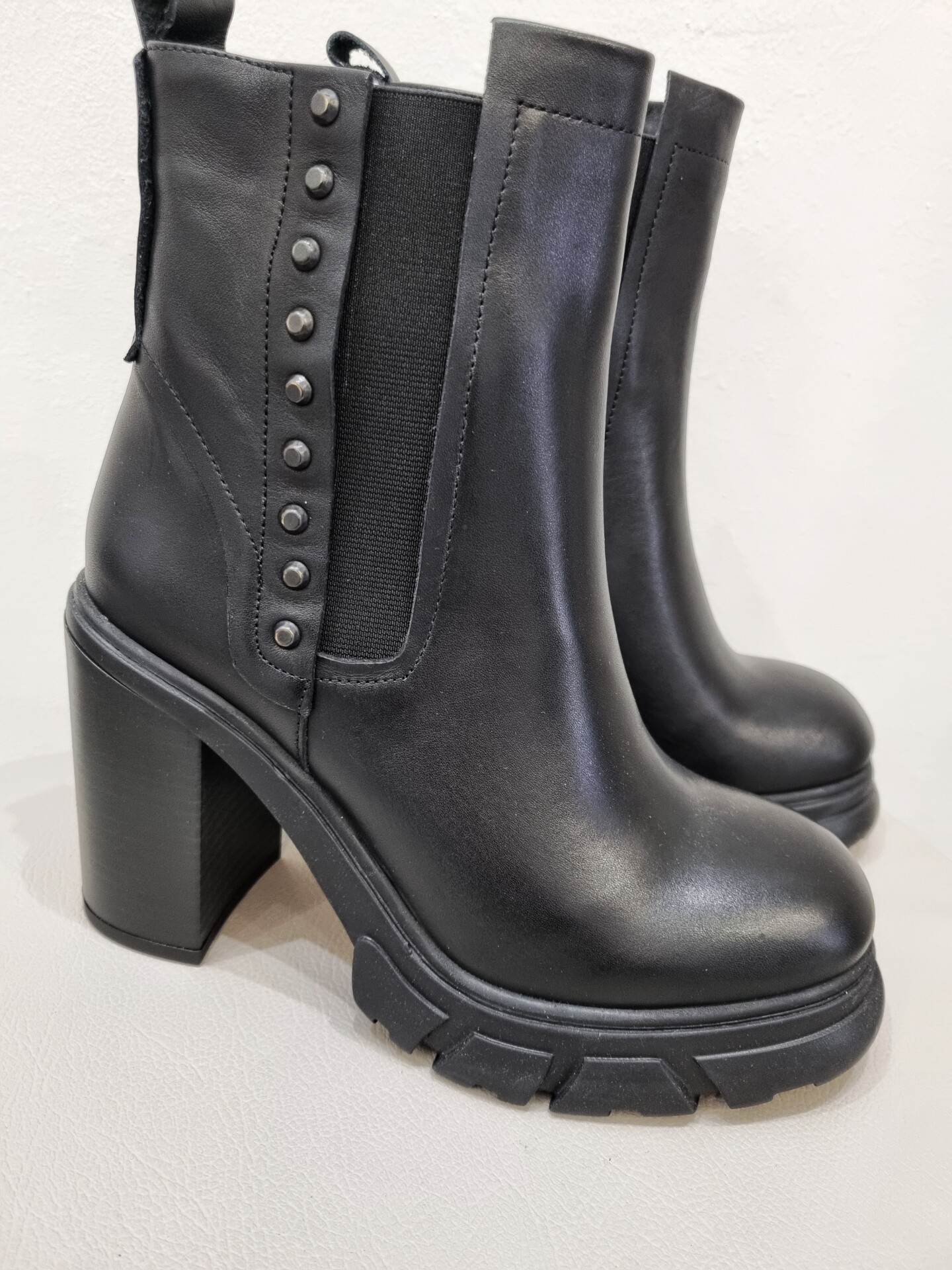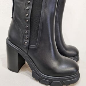 Scrivi per primo la recensione per “CAFèNOIR – Tronchetti con tacco e plateau in pelle con elastico e borchie”