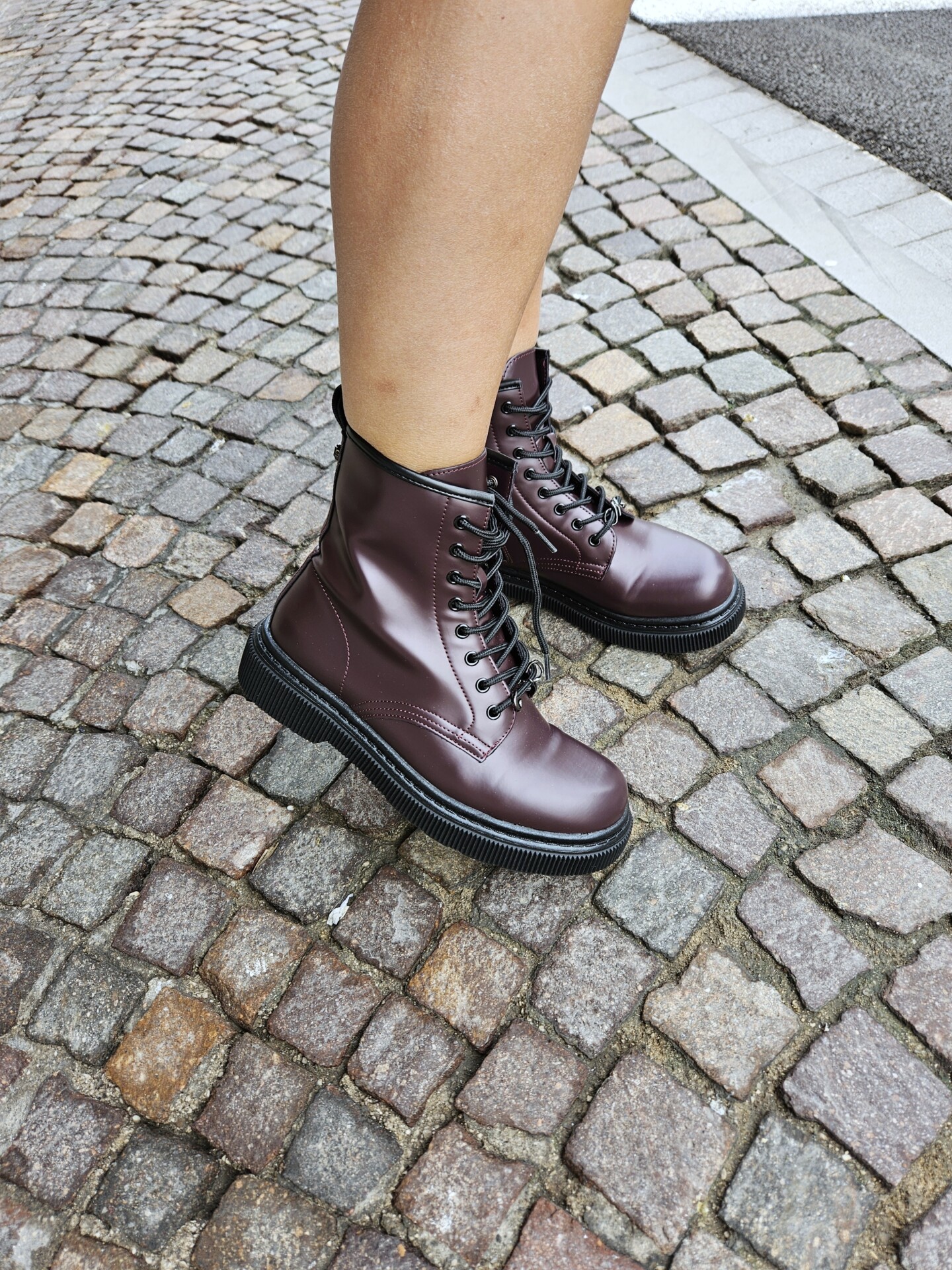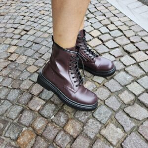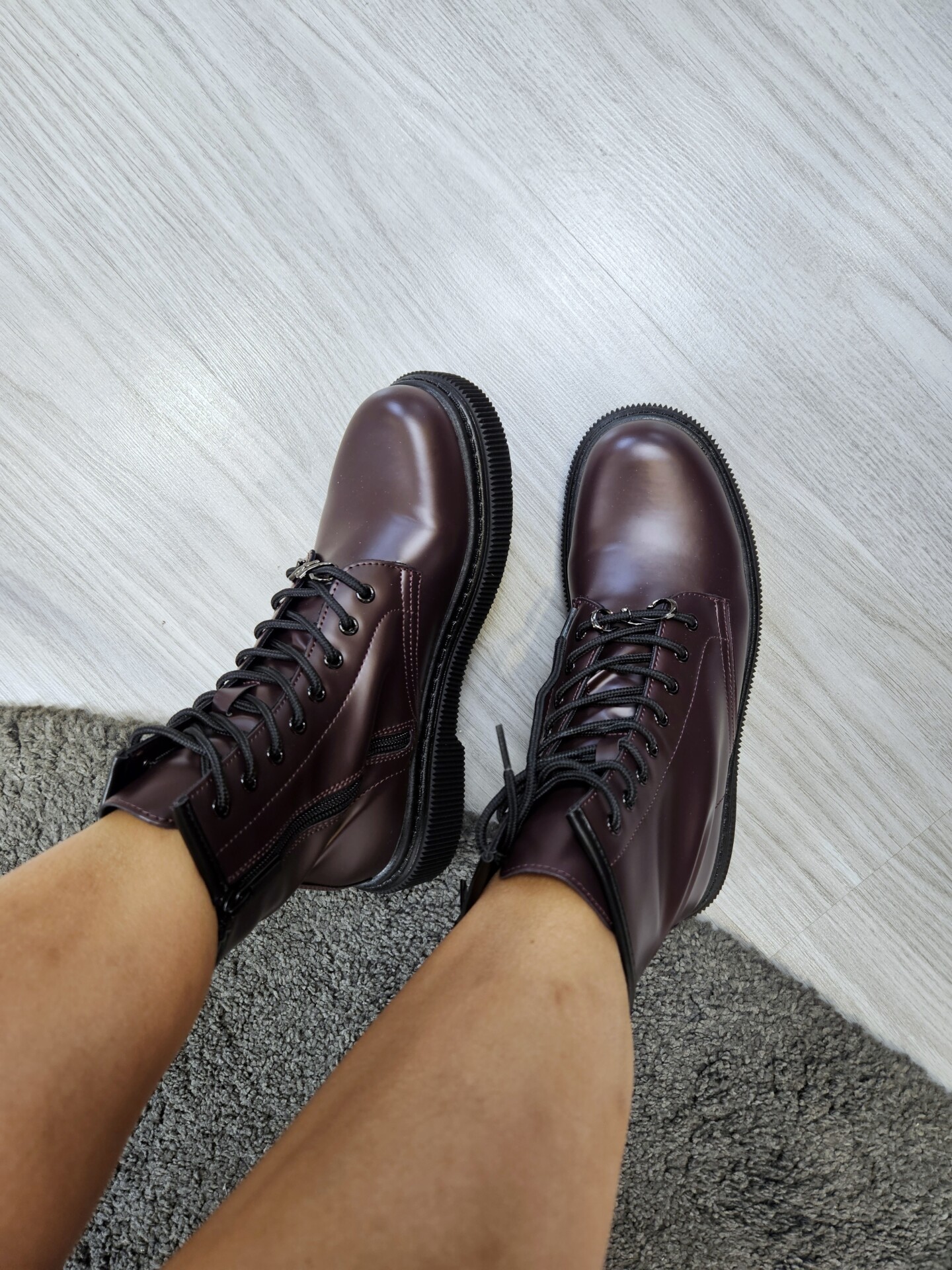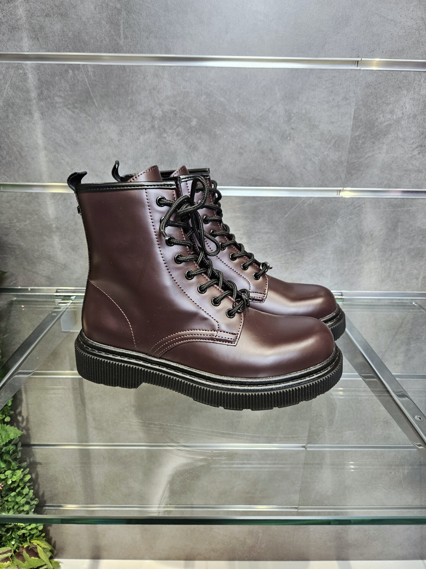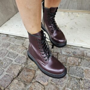 Tronchetti allacciato in similpelle effetto abrasivato. passalacci personalizzato e zip interna. fodera in tessuto e suola alta 4 cm. iconico best seller dal design urbano essenziale e intramontabile.