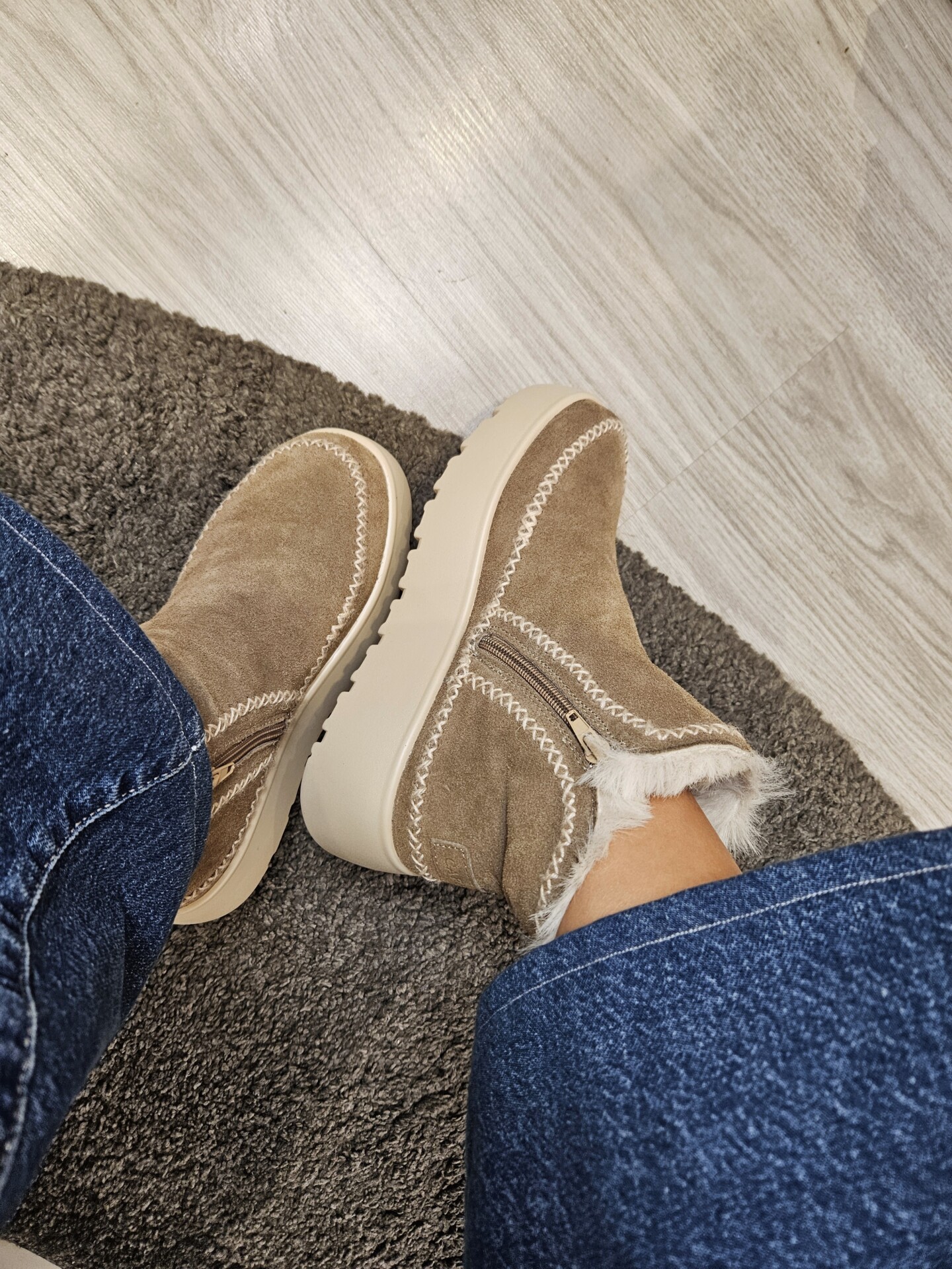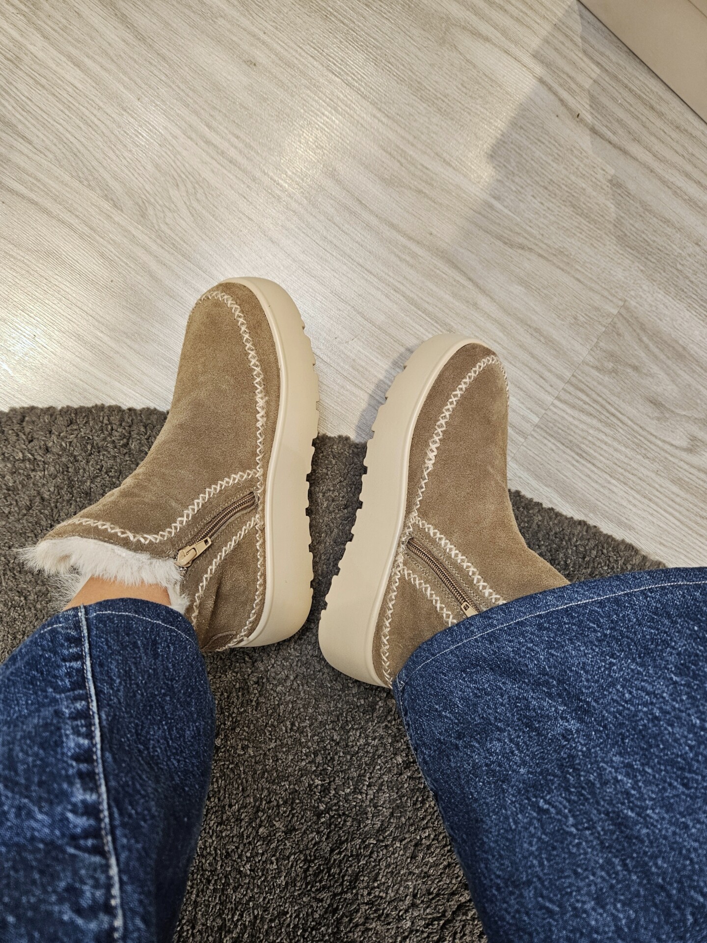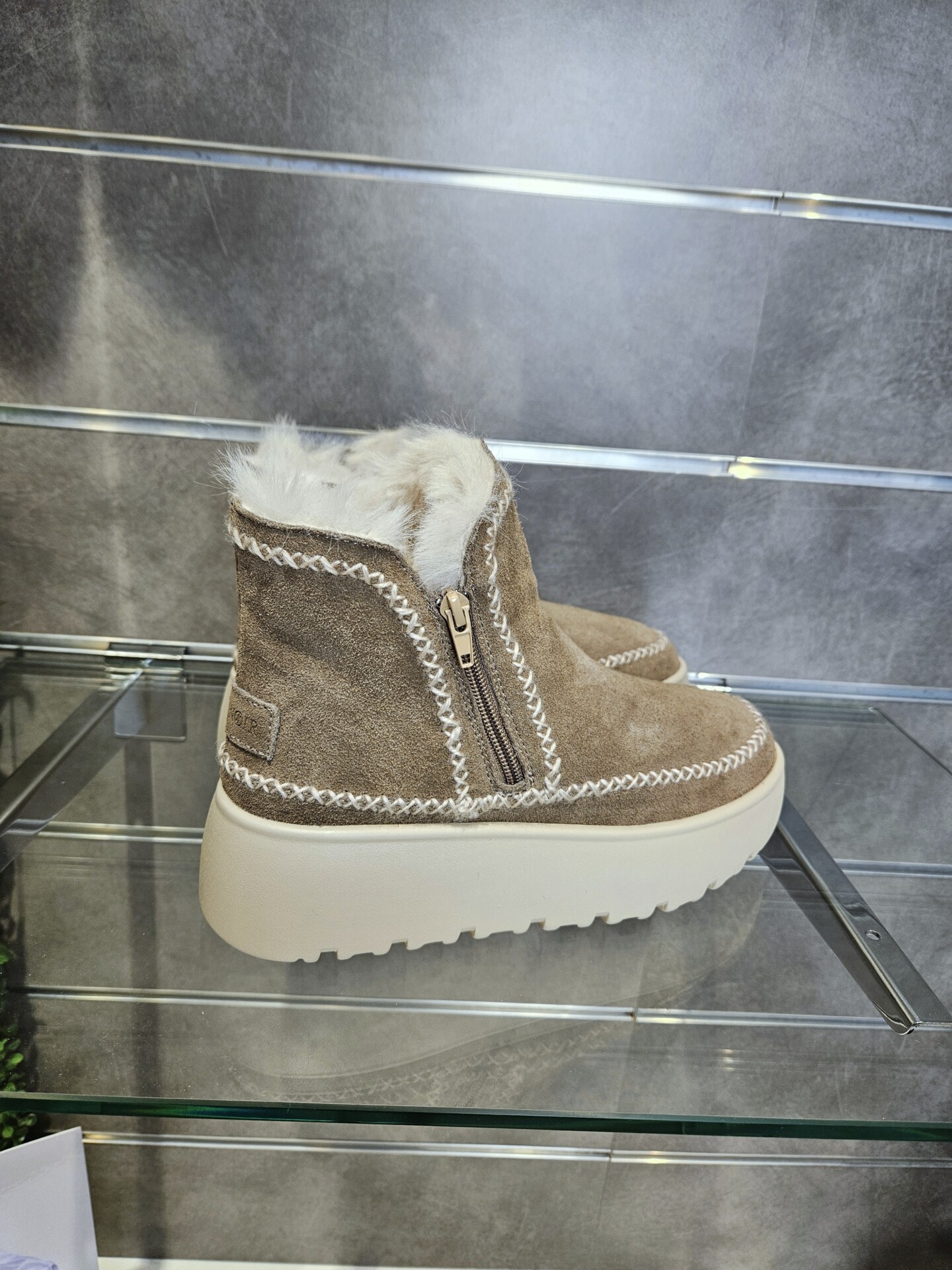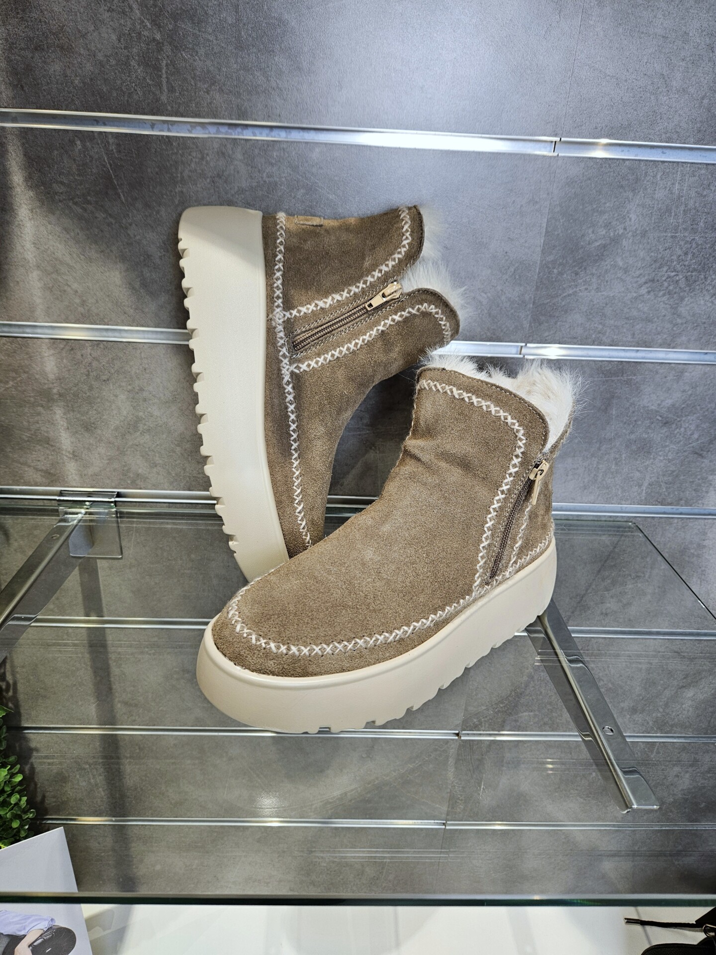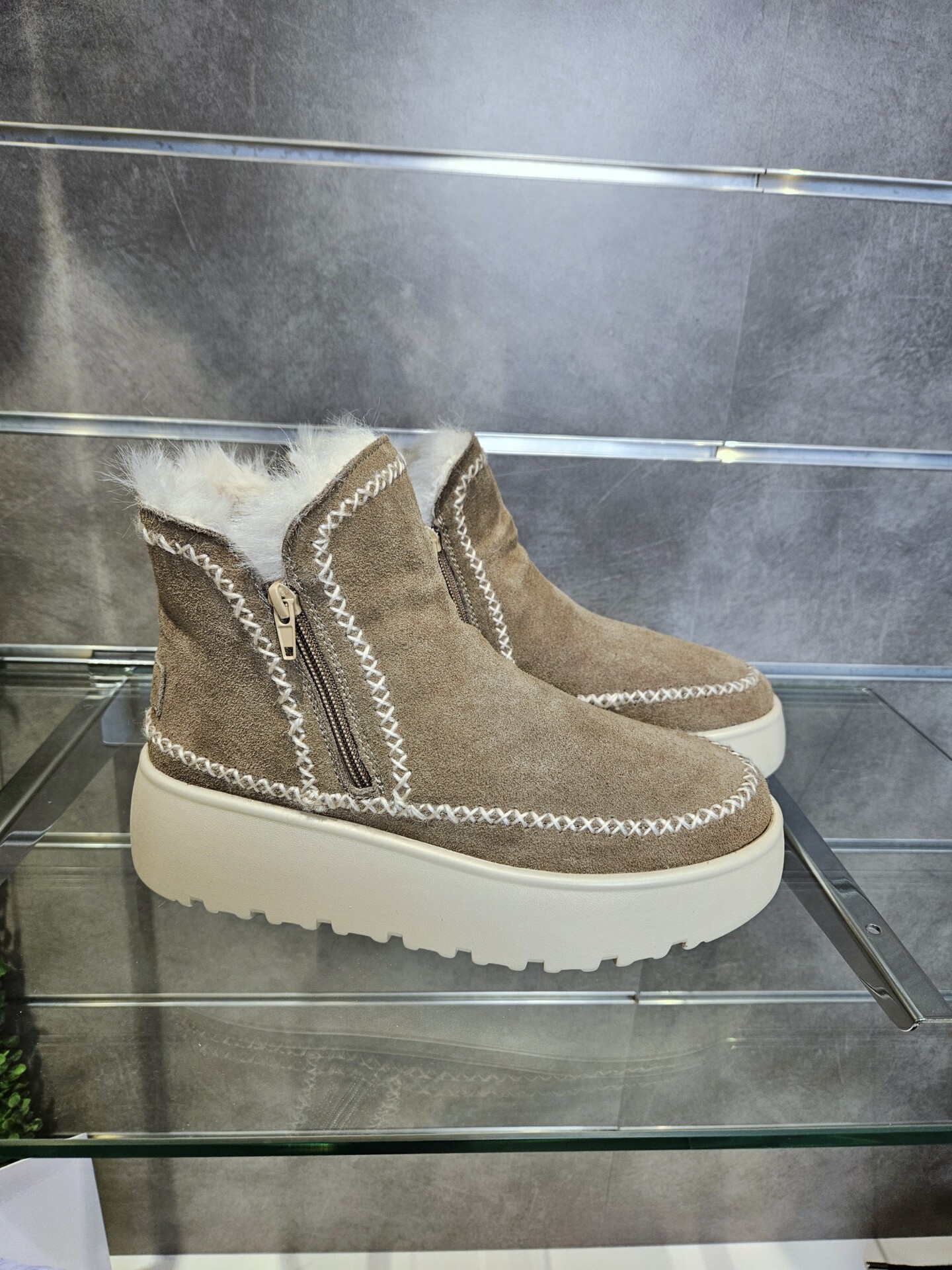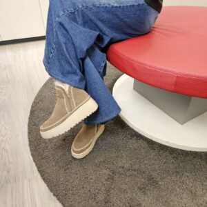 Tronchetti in pelle scamosciata con doppia zip laterale per una calzata pratica e veloce. fodera e soletto in pelliccia sintetica. suola platform 4 cm. caldi e trendy.