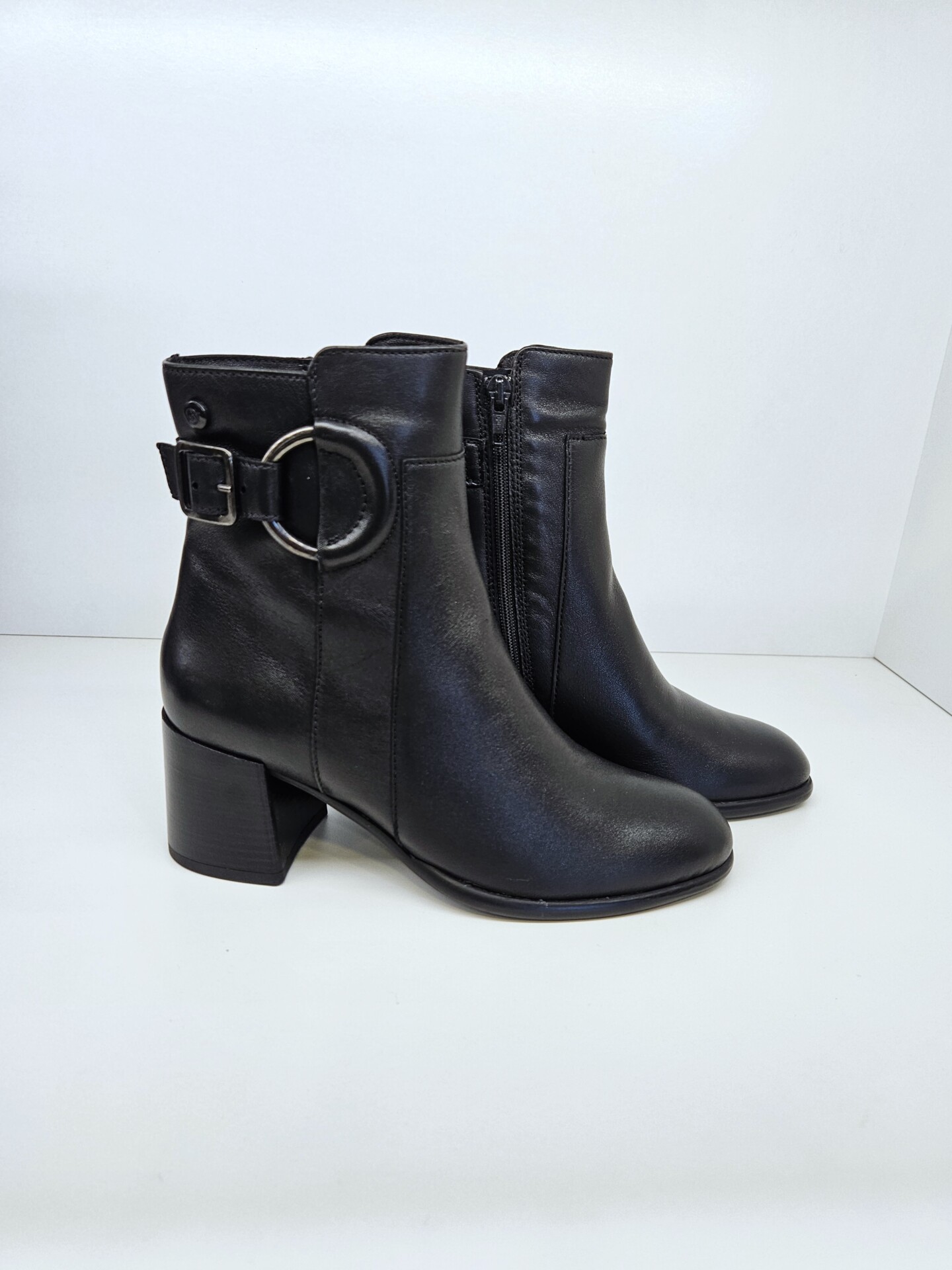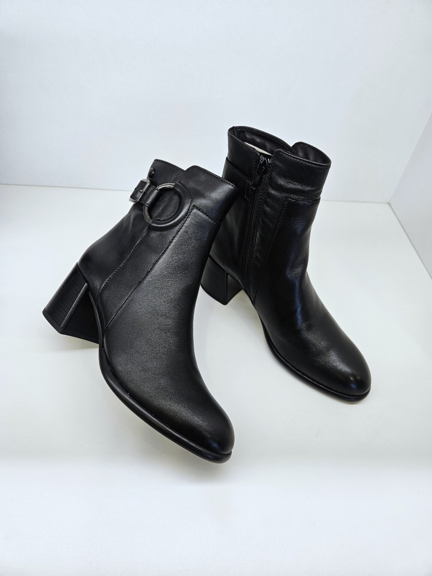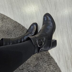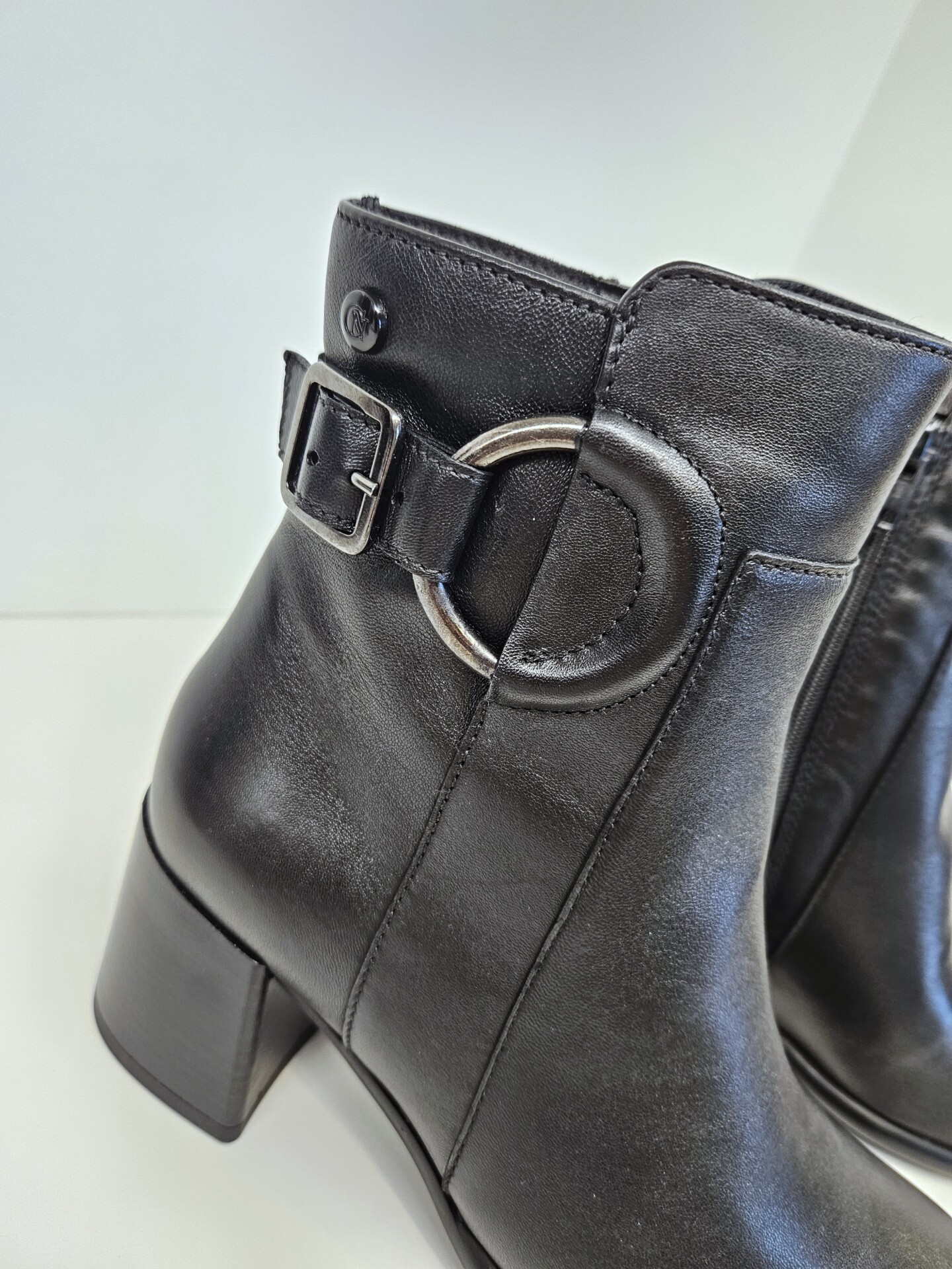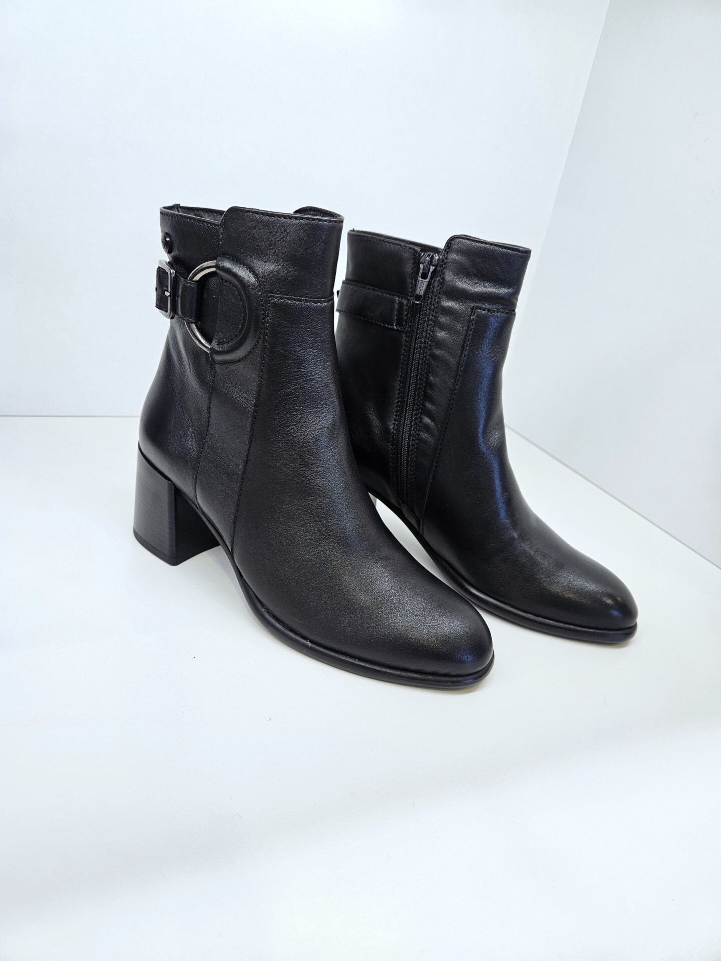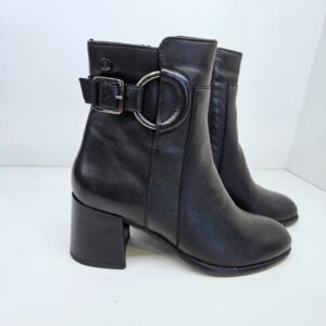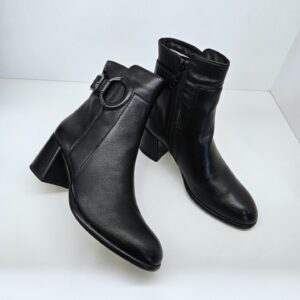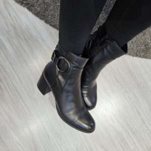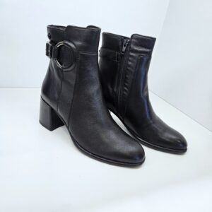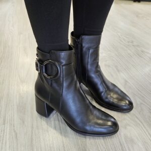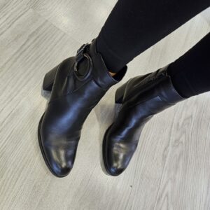 Tronchetto in pelle con fibbia laterale ed anello inserito a decoro. tacco da 60mm e soletto in pelle. ideale in abbinamento a molteplici look da mattina a sera.